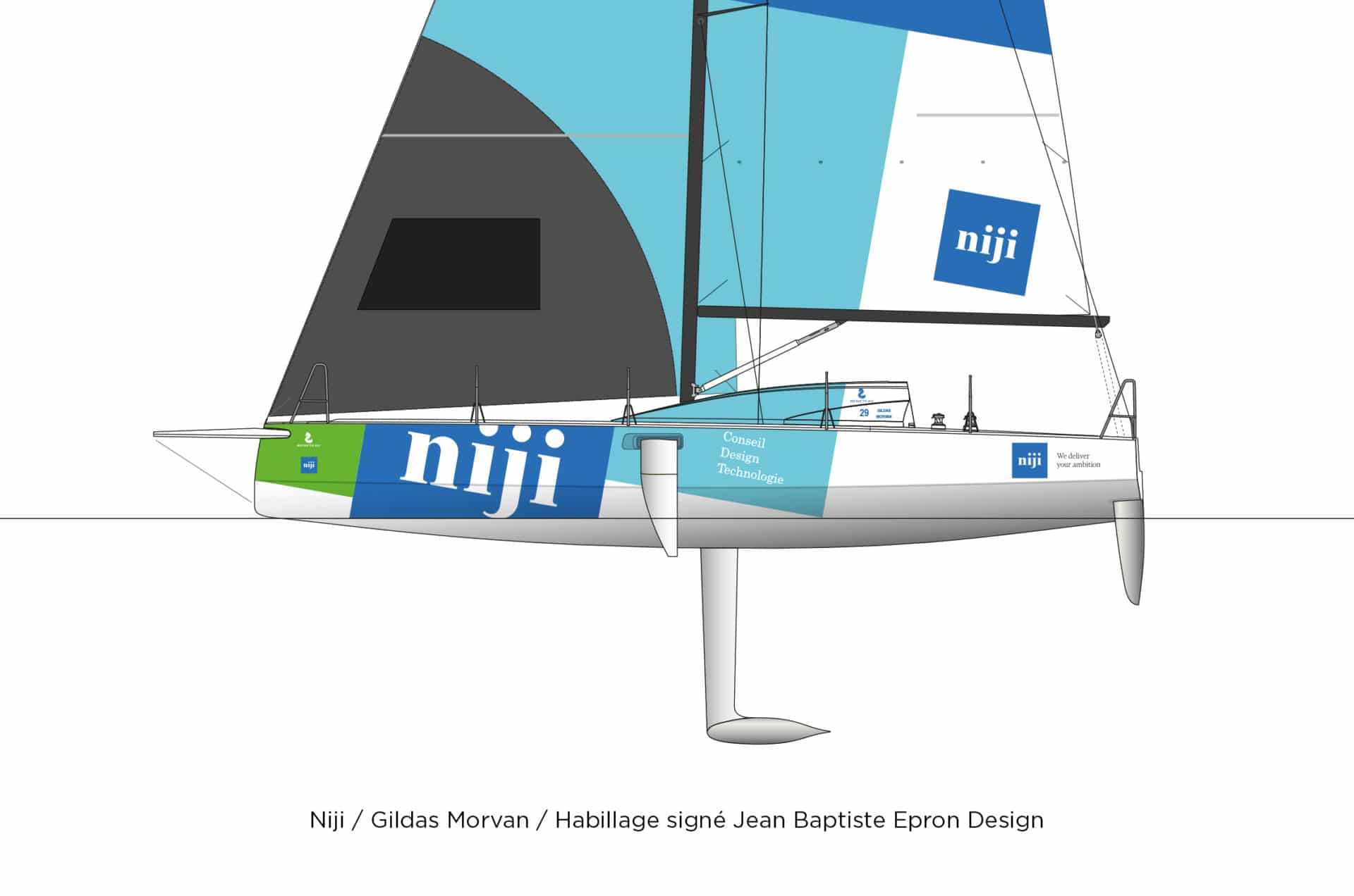 Mise à l’eau en 2001, en Bretagne, Niji a fait de la révolution numérique et de l’accompagnement de ses clients pour en tirer le meilleur une force et un savoir-faire largement reconnus. Depuis 18 ans, Hugues Meili, son fondateur, a mêlé la trajectoire de son entreprise à la mer et la navigation ; en se portant acquéreur d’un croiseur destiné à faire découvrir la voile et régater ses collaborateurs d’abord, puis en engageant une solide collaboration avec OC Sport Pen Duick, organisateur de course. Fournisseur de l’application mobile de la Route du Rhum 2010, Niji a poursuivi avec celle de la Transat Bénodet Martinique en 2011, jusqu’à devenir le fournisseur digital officiel de la Route du Rhum – Destination Guadeloupe 2018, offrant aux passionnés et aux novices la possibilité de ne rien manquer de cette course mythique. Portés par un réel engouement en interne et l’envie de poursuivre une histoire maritime, Hugues Meili et ses équipes ont décidé d’ouvrir un nouveau chapitre. « Nous n’avions, jusqu’alors jamais osé franchir le cap du sponsoring, explique le chef d’entreprise. Mais ce que nous avons découvert sur la Route du Rhum-Destination Guadeloupe 2018 nous a plu, nous l’avons vécu pleinement et l’avons bien partagé avec nos collaborateurs et nos clients. La question d’y donner une suite s’est naturellement posée et de manière très forte. Dans son domaine, Niji fait la course en tête avec un bel équipage aux talents multiples, et c’est ce qui a sans doute fédéré cette envie en interne, auprès de nos 800 salariés. Et de la même manière que la 50ème édition de La Solitaire Urgo Le Figaro a donné envie à de nombreux marins d’y faire leur retour, cet anniversaire combiné avec LA grande première de ce condensé de technologie et d’innovation qu’est le Figaro Bénéteau 3, nous a donné envie de nous lancer ! ».
