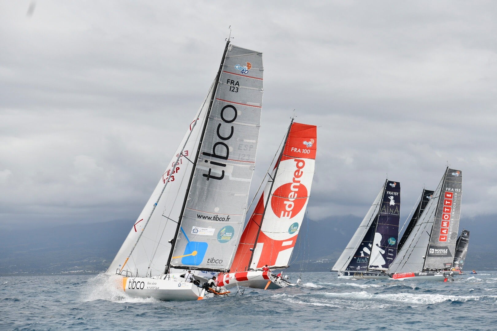 Les 12 monocoques de la Class40 ont quitté samedi matin Pointe-à-Pitre à 15 heures françaises très précises (soit 10 heures en Guadeloupe), dans le cadre du Défi Atlantique Guadeloupe > Horta > La Rochelle, à destination de Horta dans l’archipel des Açores. Prélude à ces 2 300 milles de course au contact et en équipage réduit de 2 à 4 marins, un parcours de 35 milles depuis l’îlet Gosier jusqu’à Marie-Galante via Basse-Terre, histoire de profiter jusqu’au bout de l’hospitalité Guadeloupéenne. Le vent d’Est était au rendez-vous, ayant levé en chemin une houle déjà bien marquée, notamment du côté de Marie-Galante.