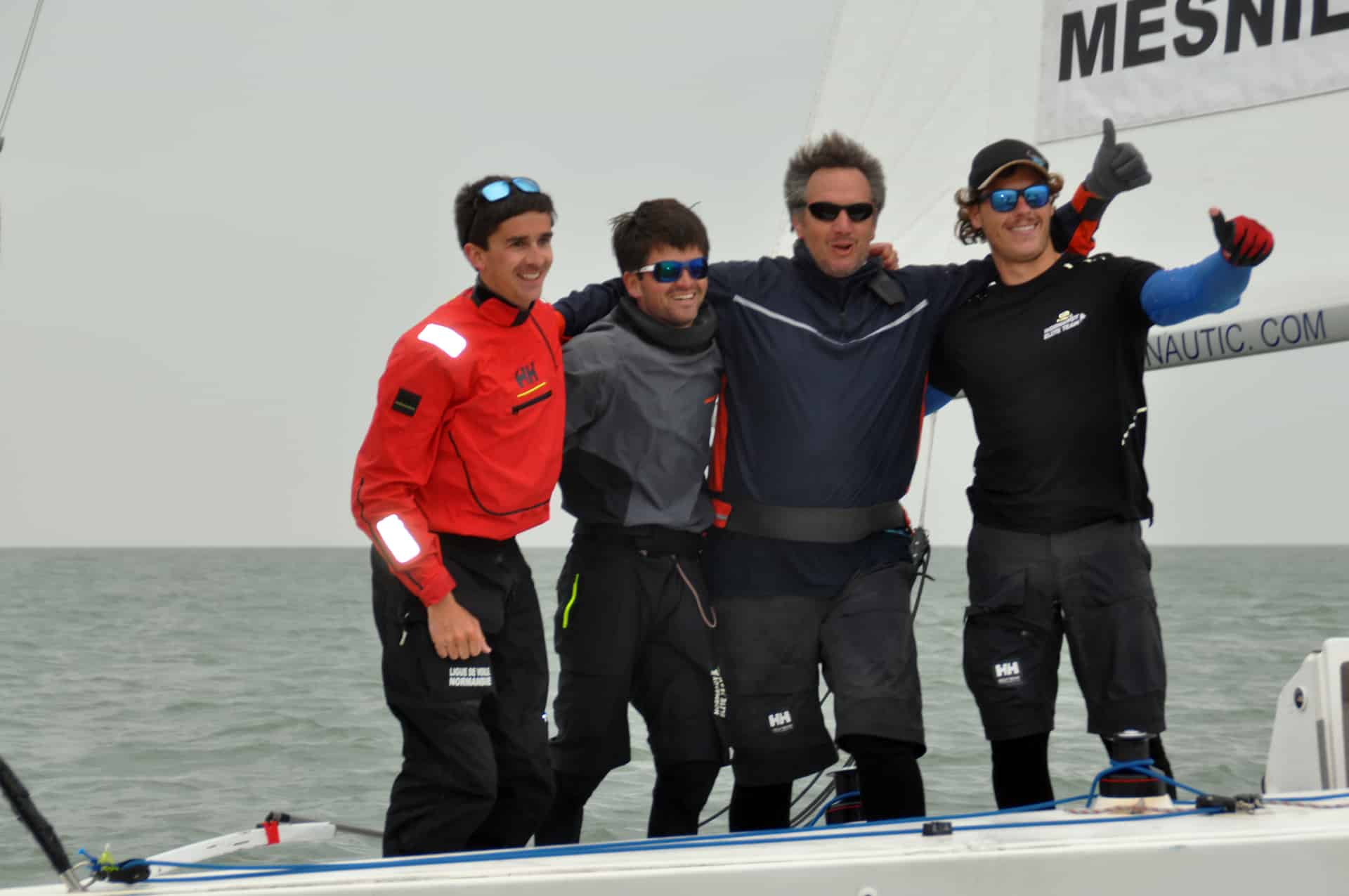 Au 3e match, Maxime Mesnil reprenait les choses en main, grâce à une belle vitesse et un contrôle parfait. Puis au 4e duel on toucha à un niveau exceptionnel de match-racing avec un combat acharnée de bout en bout, finalement remporté par Cédric Château pour moins d’un bout-dehors ! Frustration énorme pour l’équipage du MatchInBlack by Normandy Elite Team qui avait une main sur le trophée pendant une grande partie de la manche. Mais sur le 5e match décisif, Mesnil et les siens ont su se remobiliser pour aller chercher leur premier titre de Champion de France Open de la discipline. Un beau point final d’une édition marquée par un niveau rarement atteint sur un championnat et des duels de très haute qualité. Le match-racing Français a de beaux jours devant lui !