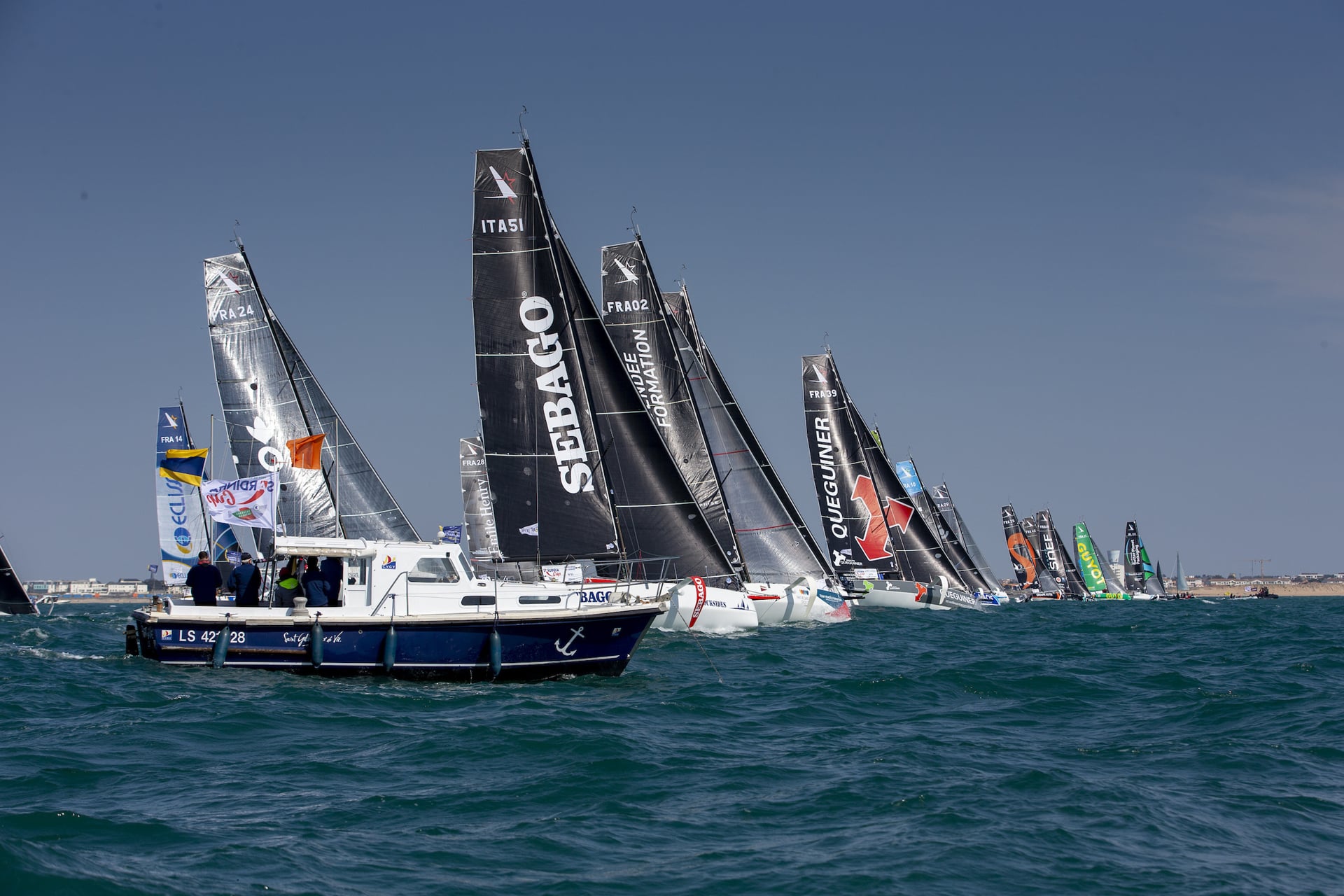 Et ce sont ces derniers qui ont eu raison, puisqu’à la bouée de dégagement située devant Brétignolles-sur-Mer, les Irlandais de Smurfit Kappa (Tom Dolan-Damian Foxall) pointaient en tête, talonnés par Groupe SNEF (Xavier Macaire-Achille Nebout) et Charal (Jérémie Beyou-Alan Roberts).