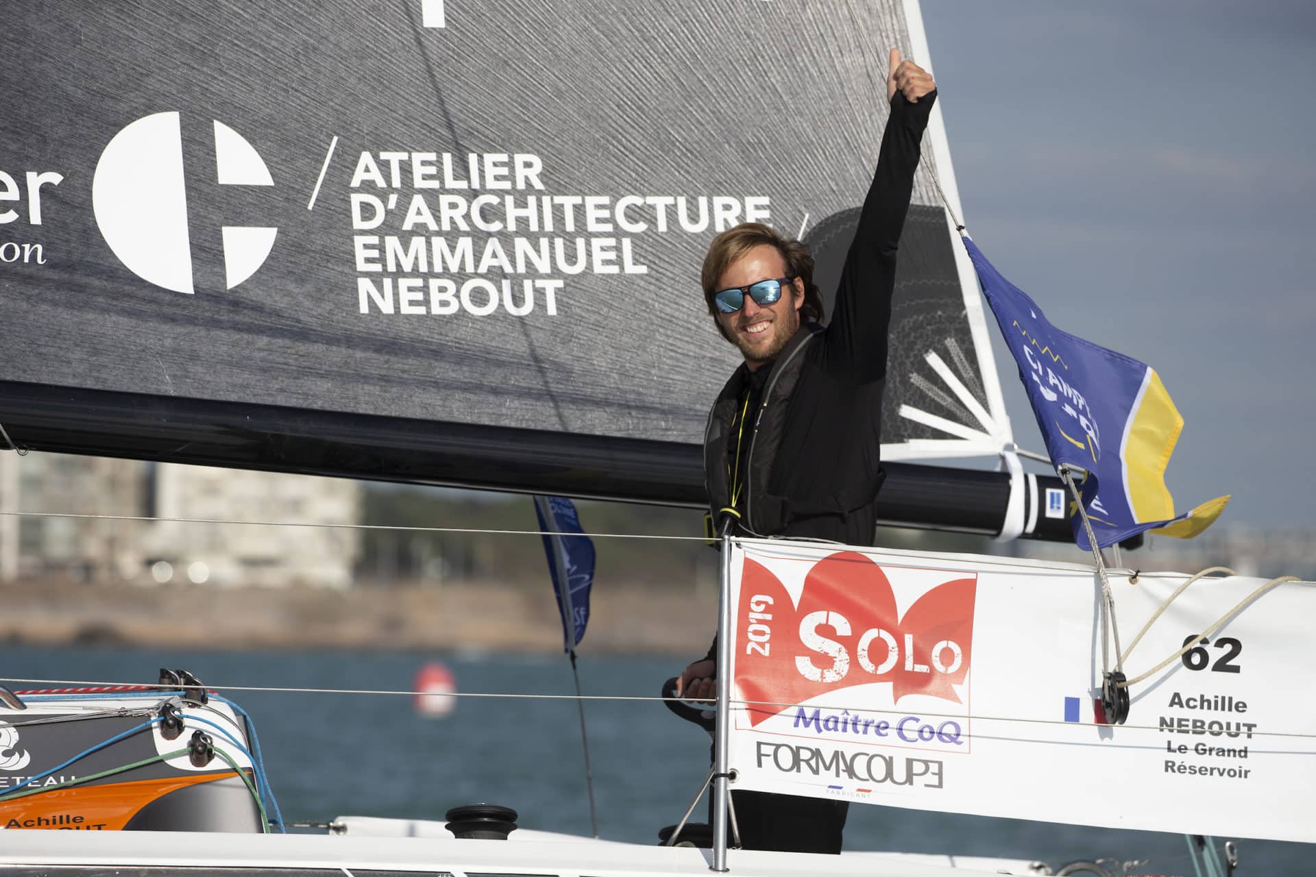 Les petits airs et les phases de transitions ont bien souvent l’art de créer des surprises et de relancer la donne. L’exemple a encore été donné ce lundi, premier jour de compétition de la Solo Maître CoQ. « Le vent a beaucoup tourné. Il y a eu des passages à niveau. Globalement, ça a été compliqué », a commenté Achille Nebout, incontestablement la belle surprise du jour. « Je n’en reviens pas d’avoir gagné. C’est incroyable pour ma première course en solitaire donc je savoure ! J’ai du mal à réaliser. C’est quelque-chose de finir avec le vainqueur du Vendée Globe sur les talons et évidemment, je suis super content d’avoir réussi à rester devant lui jusqu’au bout », s’est satisfait le skipper du Grand Réservoir qui s’est donc imposé à l’issue de ce premier round. Une première manche très largement chamboulée entre la bouée 1 et la bouée 2. « J’ai débuté ce bord derrière le gros paquet puis comme Armel Le Cléac’h, Justine Mettraux et un petit groupe, je me suis tout de suite mis sur la route directe sous spi pendant que les autres ont lofé. Cela m’a permis de passer bien devant. Ça a vraiment été LA bonne option de la course et c’était d’ailleurs mon plan avant même le départ puisqu’on s’attendait à une rotation du vent. Je suis super content ! », a assuré le Montpellierain qui a fait ses armes en olympisme, régatant notamment au plus haut-niveau en double avec Nicolas Charbonnier, mais qui a aussi déjà fait forte impression lors de la première épreuve de la saison, en double avec Xavier Macaire en début de mois. « Sur la Sardinha Cup, on a terminé 3e et c’est vrai que l’épreuve m’a permis de prendre mes marques sur le bateau, de choper quelques bons réglages et de faire les bons choix techniques », détaille Achille dont le bateau n’est sorti du chantier que le 9 avril dernier. « C’était déjà une victoire d’être au départ de cette course alors gagner la première manche, c’est encore plus fou mais je ne vais pas m’emballer. Je vais continuer de m’appliquer à faire les choses bien pour apprendre à connaitre le bateau. Un bon classement au final ne sera que du bonus ! », a assuré le navigateur qui s’était pourtant trouvé obligé de réparer après un départ prématuré.