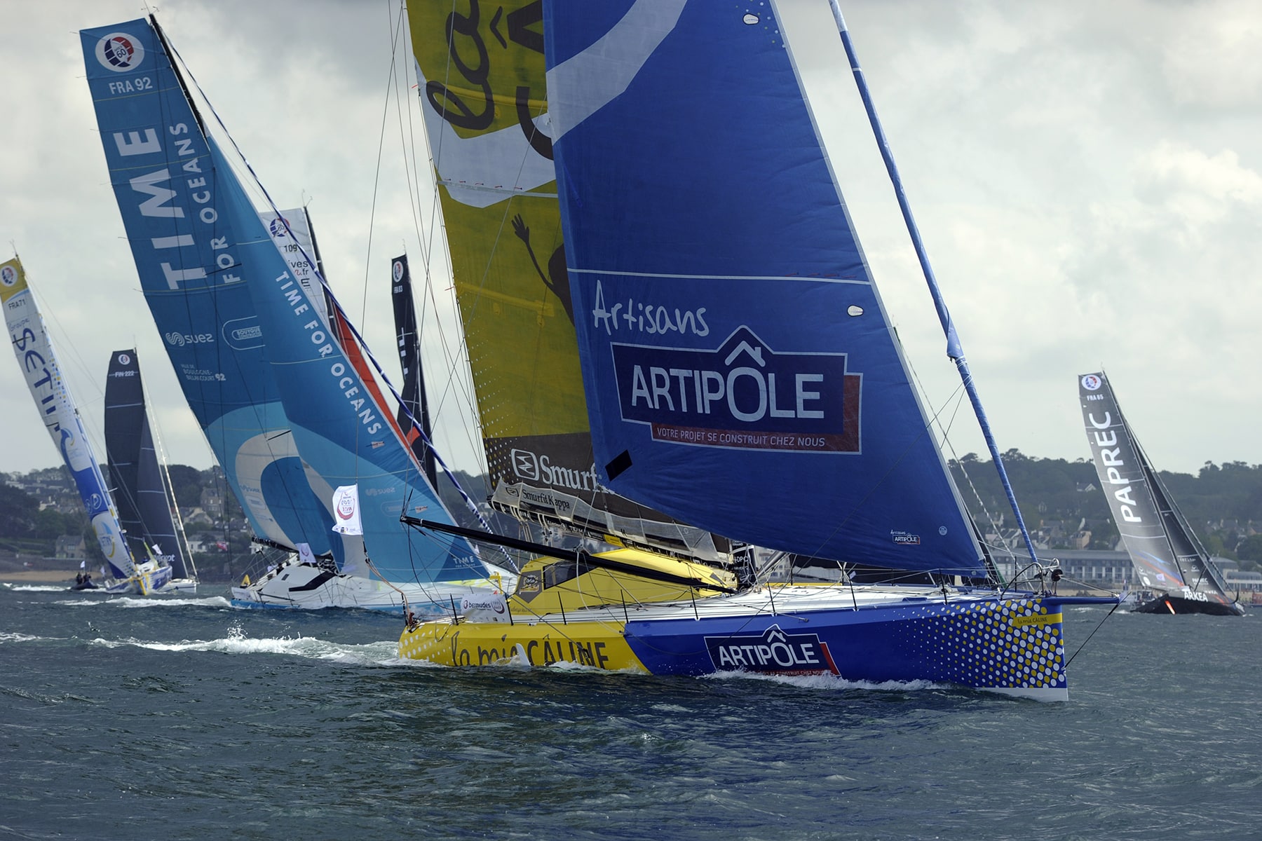 A la bouée de danger isolée Basse Vieille devant le cap de la Chèvre (presqu’île de Crozon), Sam Davies emmenait la flotte devant Clément Giraud, Sébastien Simon, Manu Cousin et Giancarlo Pedote. Les marins peuvent tirer sur la barre pour mettre cap sur Ouessant, qui fait office de marque de parcours à laisser à tribord. « Dès les premières heures de course, en fin de soirée, les concurrents auront un premier choix tactique à effectuer, en passant à l’Est ou à l’Ouest du DST (dispositif de séparation de trafic) d’Ouessant, qui est une zone interdite », explique Jacques Caraës, le directeur de course. « La première nuit s’annonce très calme pour le début de la montée en mer d’Irlande. D’après nos routages, les premiers bateaux devraient arriver au phare du Fastnet jeudi au petit matin. Les 825 milles entre le Fastnet et la marque virtuelle des Açores commenceront dans un régime de Sud-Est très faible avec le passage d’une dorsale, puis le vent s’intensifiera à 15-20 nœuds avant de mollir à nouveau. On peut s’attendre à un resserrement de la flotte au niveau du waypoint Açores. »
