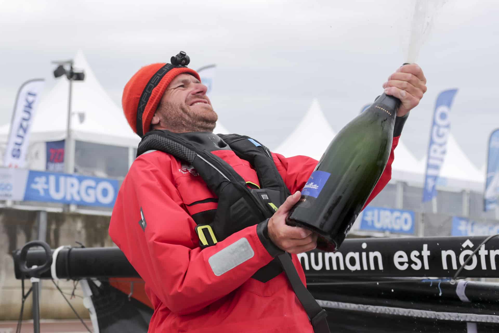 « Boire du champagne avec 50 milles d’avance c’est pas mal ! » Il pouvait avoir le sourire, Anthony Marchand, au moment de prendre une grande goulée de champagne sur son Figaro Bénéteau 3 tout juste amarré au Port du Bloscon ! Sorti meurtri des deux premières étapes de La Solitaire URGO Le Figaro (31e à Kinsale, 14e à Roscoff, 24e au général), le skipper de Groupe Royer-Secours Populaire s’est offert une troisième victoire d’étape personnelle sur l’épreuve (les deux précédentes en 2018 à Saint-Brieuc et Saint-Gilles Croix-de-Vie) en remportant la troisième de la cinquantième édition, mercredi matin à 9h29’36.