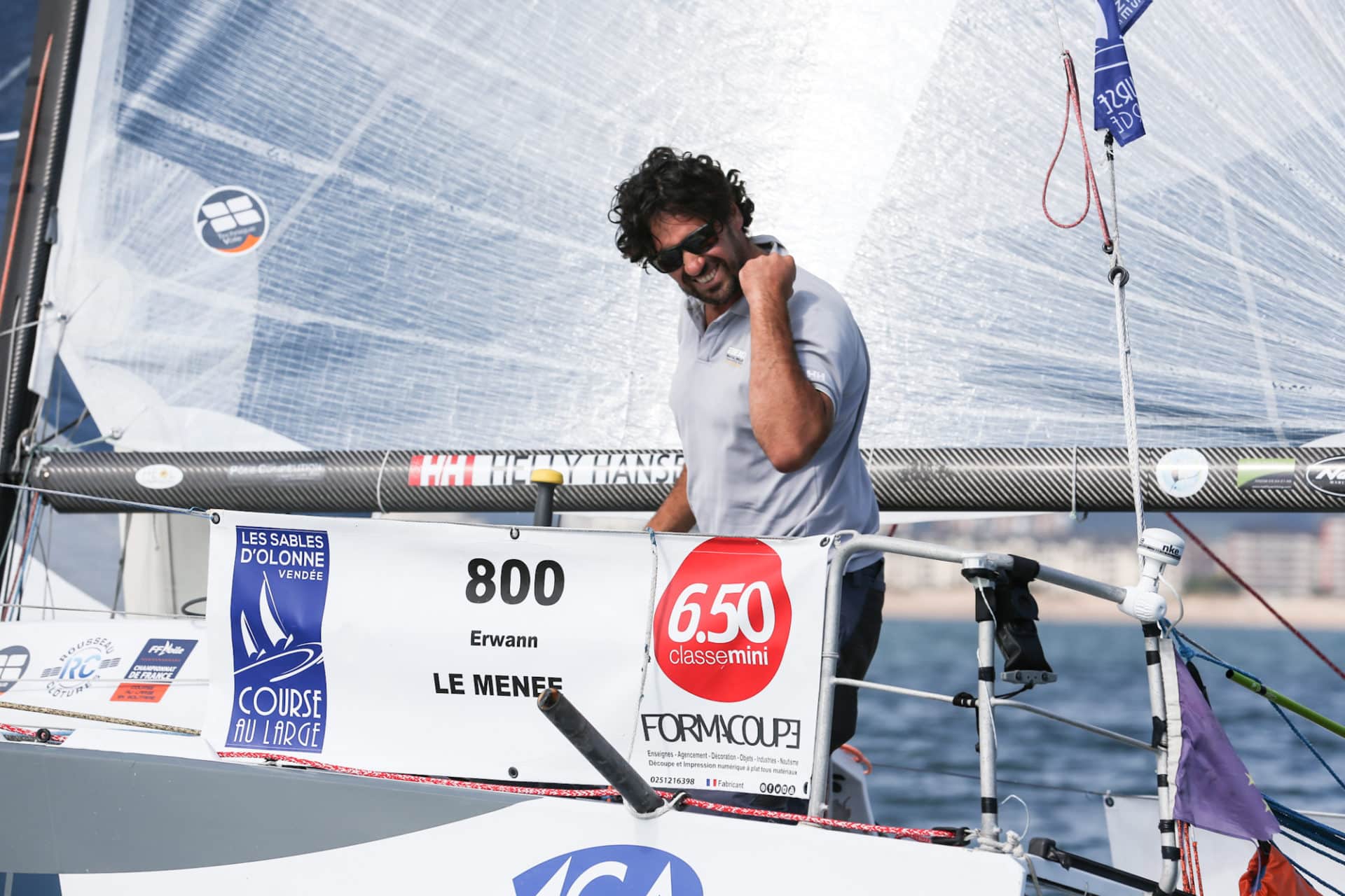 « C’était génial et hyper intéressant. On a fait un beau match à trois et c’était super à vivre, mais j’avoue que ce matin, quand Erwan nous a décollé dans la molle et que je nous voyais aussi loin, je me suis dit que le général était peut-être plié d’entrée. Je n’ai pas lâché pour autant, au contraire. J’avais l’espoir qu’il se colle dans la molle sous la pointe à l’arrivée, et c’est ce qui s’est passé. Au final, il n’y a pas d’écart. C’est balle au centre. Ça n’a pas été simple. Le vent était assez erratique. Il y avait des grosses différences de pression et d’angle. On n’était pas très loin les uns des autres, mais des fois, ça suffisait à ce qu’on n’ait pas la même chose. Comme on a des bateaux très différents, certains ont des points forts à certains moments et parfois des points faibles. Typiquement, il y a eu beaucoup de petit temps sur cette étape et c’est vraiment l’atout du 800. Ça a été dur de doser l’énergie du bonhomme, mais c’est génial que tout reste à faire dans la deuxième manche. »
