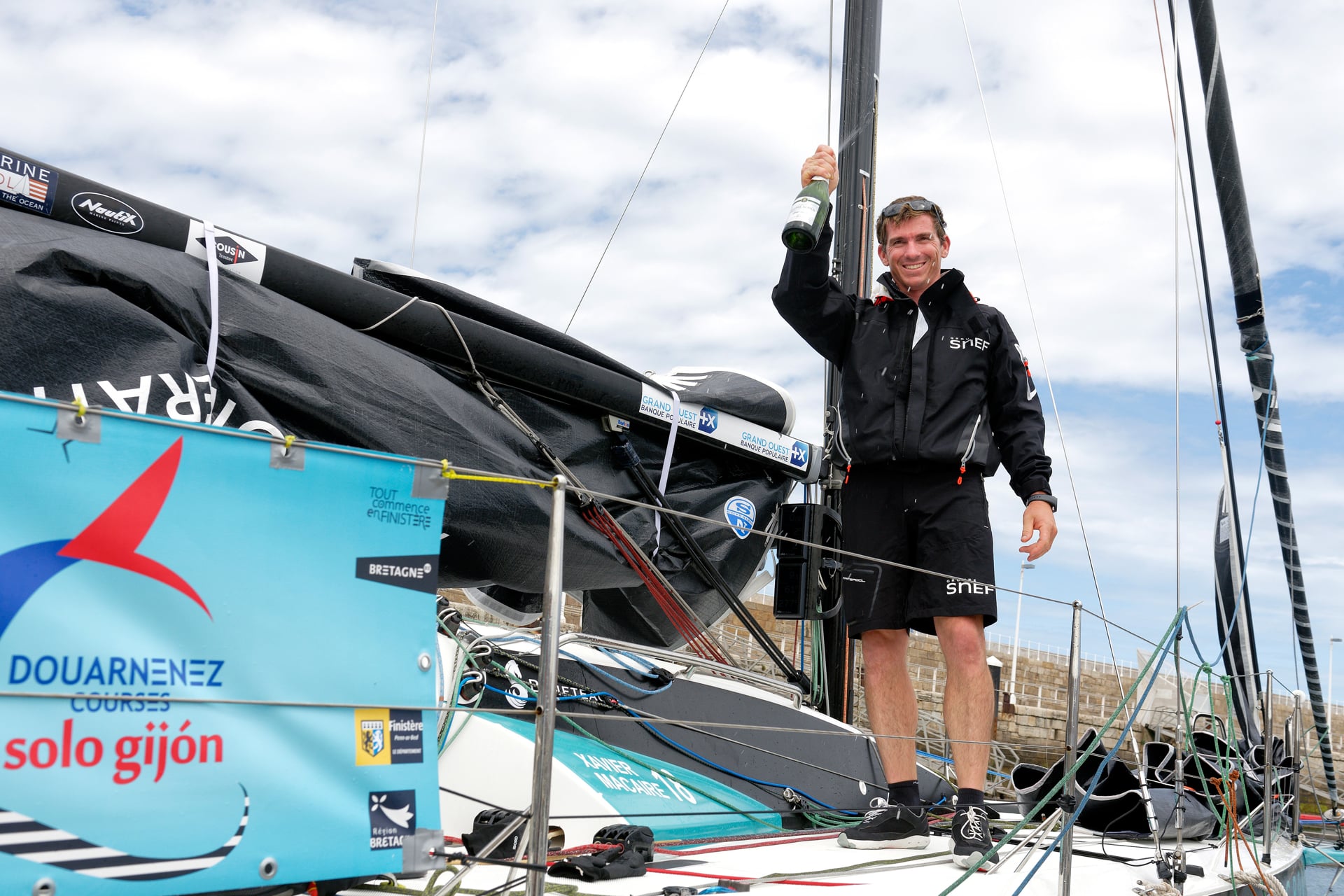 Il avait annoncé qu’il avait faim. Après une Solitaire du Figaro où il avait eu le sentiment que rien ne pouvait tourner en sa faveur, Xavier Macaire rêvait de remettre les pendules à l’heure. Ce qu’il a fait de fort jolie manière en coupant le premier la ligne d’arrivée à Gijon avec près d’une heure d’avance sur son premier poursuivant, Tom Laperche (Bretagne CMB Espoir).