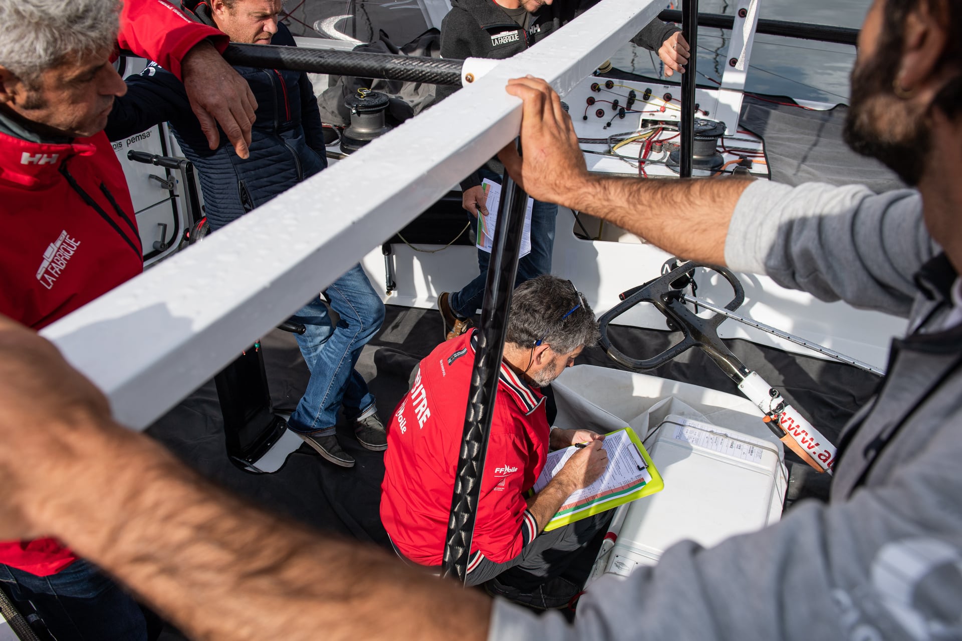 Dernières vérifications techniques du bord, visite des sponsors, médias, familles, il y a du monde sur et autour des bateaux. L’occasion de discuter avec les skippers et d’aborder le thème de la navigation en double. Car braver l’Atlantique en duo n’a rien d’une sinécure ! Les bateaux sont poussés au maximum de leur potentiel ce qui implique un engagement permanent sur le pont, aux réglages et aux manœuvres. Les binômes si professionnels soient-ils, doivent s’entendre et se comprendre.