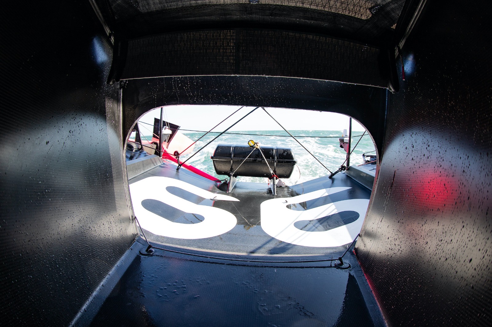 « Ce matin, Neal et moi étions tous les deux réveillés, et naviguions à environ 25 noeuds, quand nous avons heurté quelque chose dans l’eau. J’étais à l’intérieur du cockpit juste derrière le « piédestal ». Neal était juste derrière la porte du cockpit.