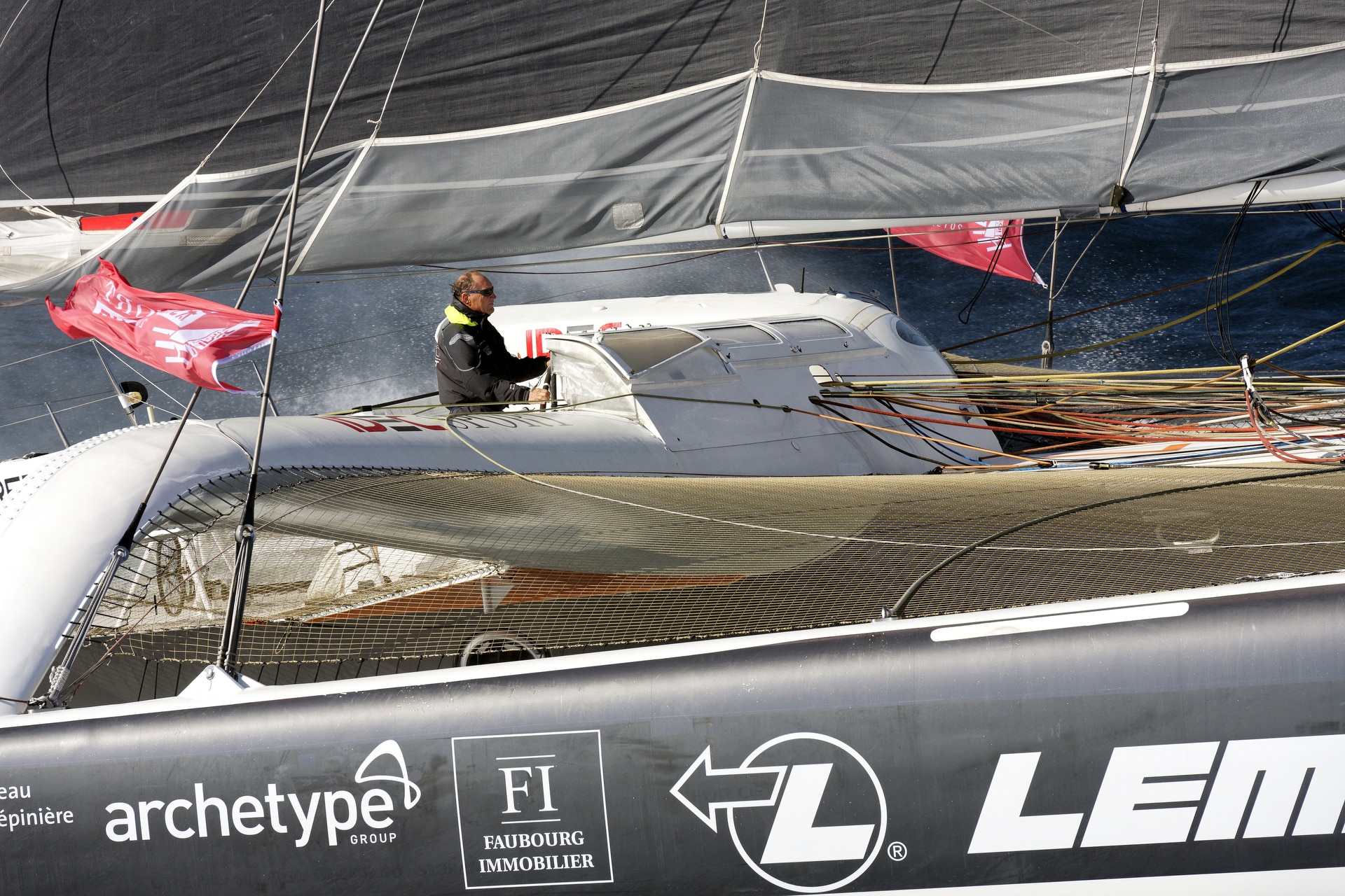 Francis Joyon, après 16 jours de mer, rayonne de bonheur et de joie de naviguer. Ce sillon impressionnant tracé en travers de l’Atlantique Sud le comble de joie. Une satisfaction si simple en apparence d’avoir parfaitement composé avec les élément qui s’offraient à lui, au prix pourtant d’un engagement qui nous semble, vue de terre, démesuré, mais qui relève pour le marin d’IDEC SPORT, de la simple logique maritime.