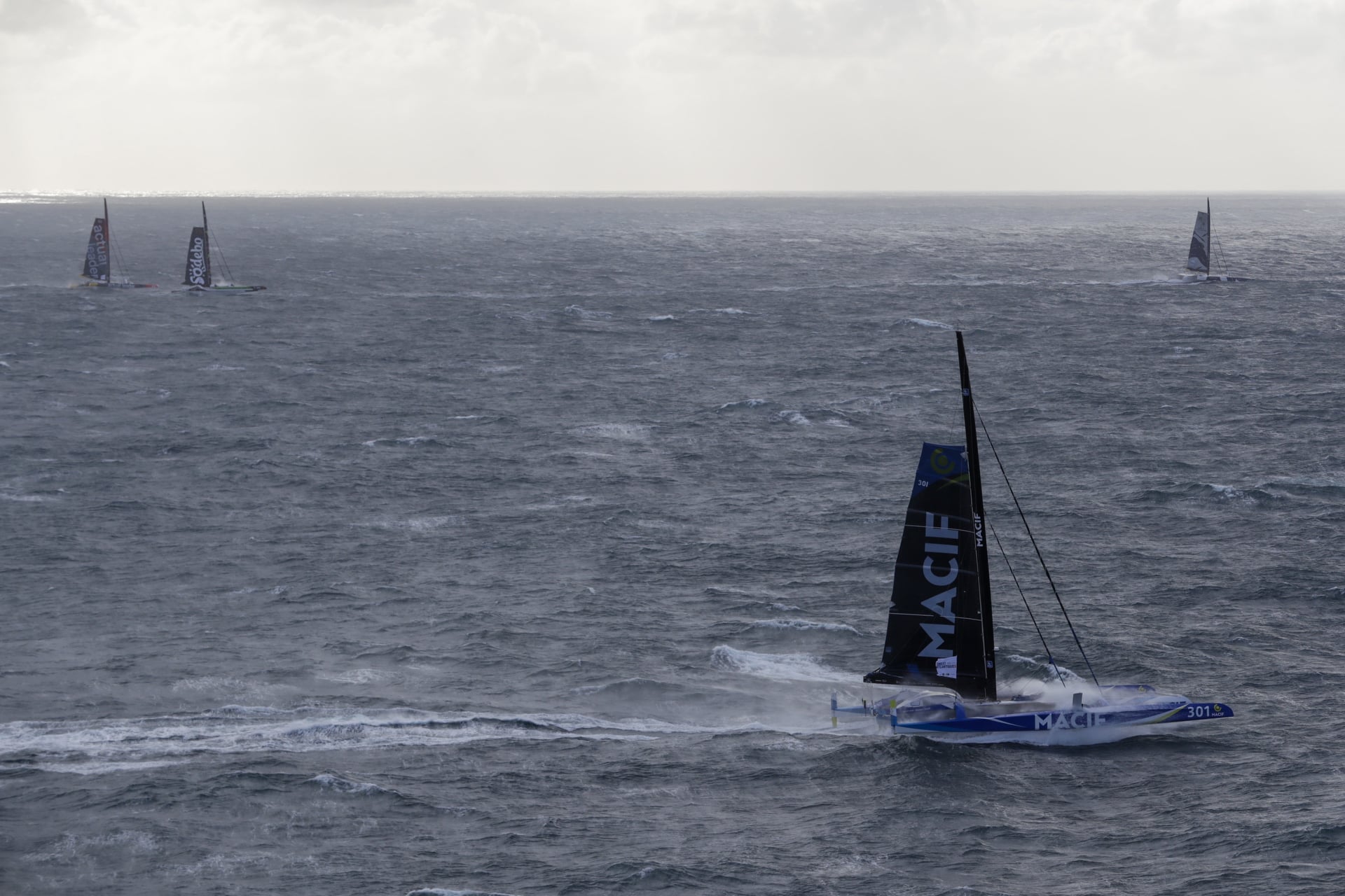 Le Trimaran Macif (François Gabart/Gwénolé Gahinet) a été le premier à couper la ligne, légèrement décalé au nord par rapport à ses trois concurrents, devant Actual Leader (Yves Le Blevec/Alex Pella), le Maxi Edmond de Rothschild (Franck Cammas/Charles Caudrelier) et Sodebo Ultim 3 (Thomas Coville/Jean-Luc Nélias), tous passés à l’extrémité sud de la ligne de 2,5 milles. Au programme de la première journée de mer, une descente express du Golfe de Gascogne dans une mer formée qui va cependant peu à peu s’aplanir. Le Cap Finisterre, à la pointe nord-ouest de l’Espagne, devrait être franchi au bout d’une dizaine d’heures.
