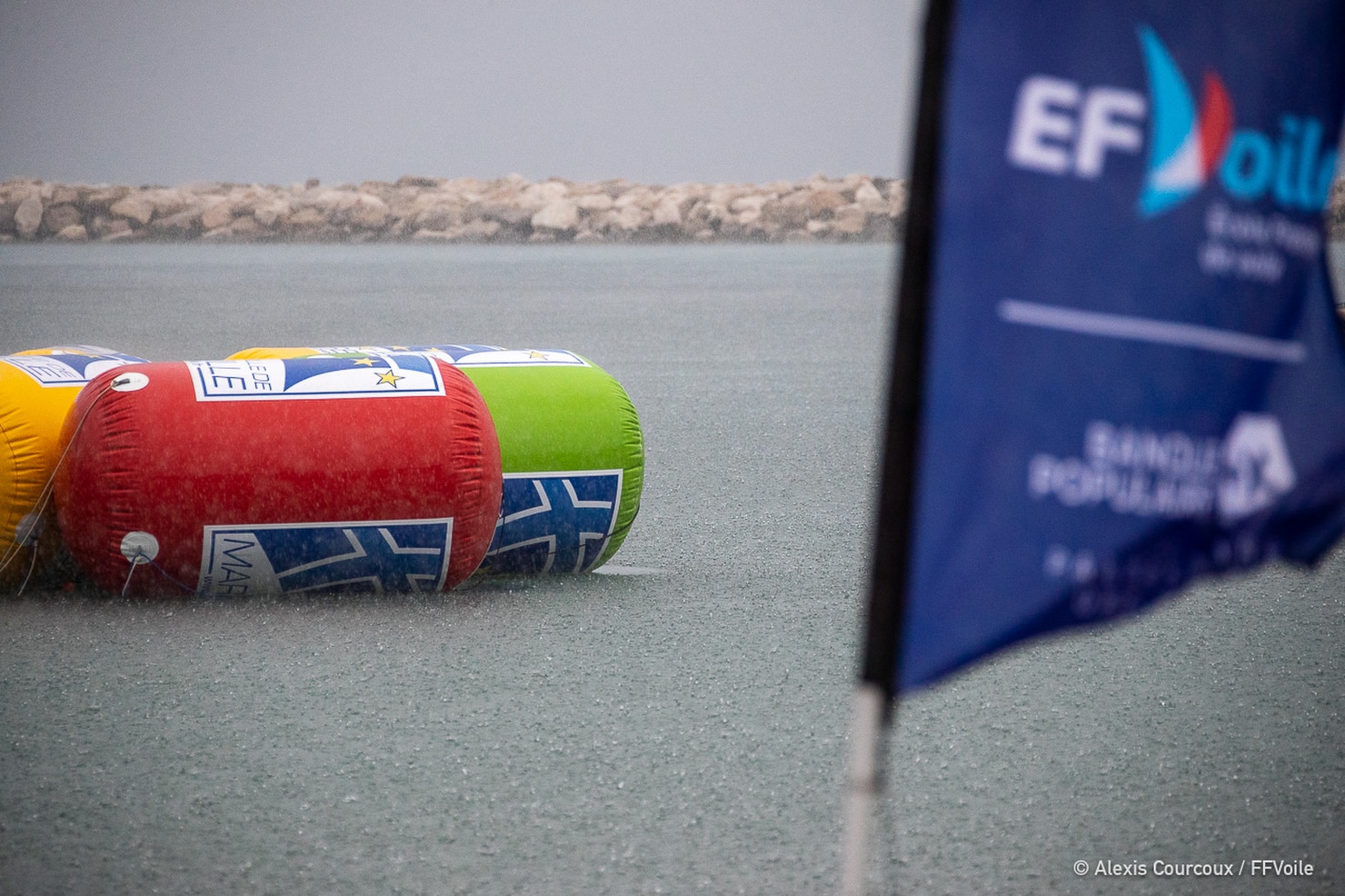 Drôle de première journée sur le Championnat de France Espoirs de Match-Racing 2019. Des torrents de pluie, des orages et leurs flots d’éclairs, accompagnés d’un vent complètement instable, Marseille s’est mis en mode « tempête hivernale » ce jeudi pour accueillir les 10 équipages en lice. Peu après le briefing initial à 11h15, le rideau de pluie s’est abattu sur la Base Nautique du Roucas Blanc où se trouve le Club de La Pelle, qui organise le Championnat. De la pluie et un vent qui a joué au derviche tourneur obligeant le comité de course à finalement annuler cette première journée de compétition.