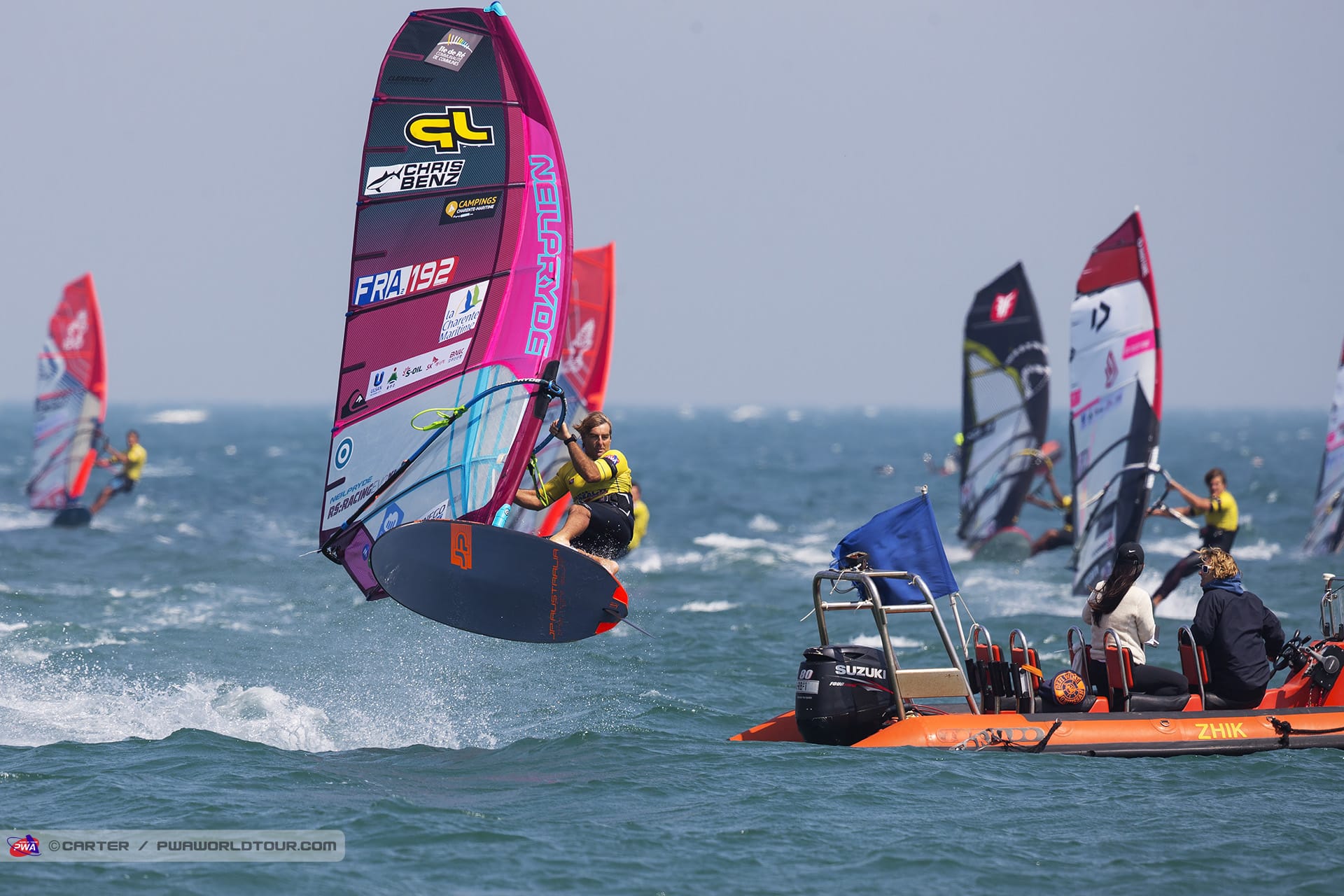 Actuellement les françaises nous offrent un podium 100% tricolore sur le classement général provisoire du circuit PWA. La championne du monde en titre, Delphine Cousin Questel domine actuellement la coupe du monde mais se remet d’une blessure au pied. Très attendue également, Marion Mortefon reste la meilleure rivale de Delphine et ne cesse d’augmenter son niveau. Enfin, Maelle Guilbaud complète le top 3 général avant l’étape finale, après une excellente 4ème place au Japon et un podium en Corée du Sud… Mais la Turque, Lena Erdil, n’est qu’à quelques points du podium et peut venir perturber les françaises.