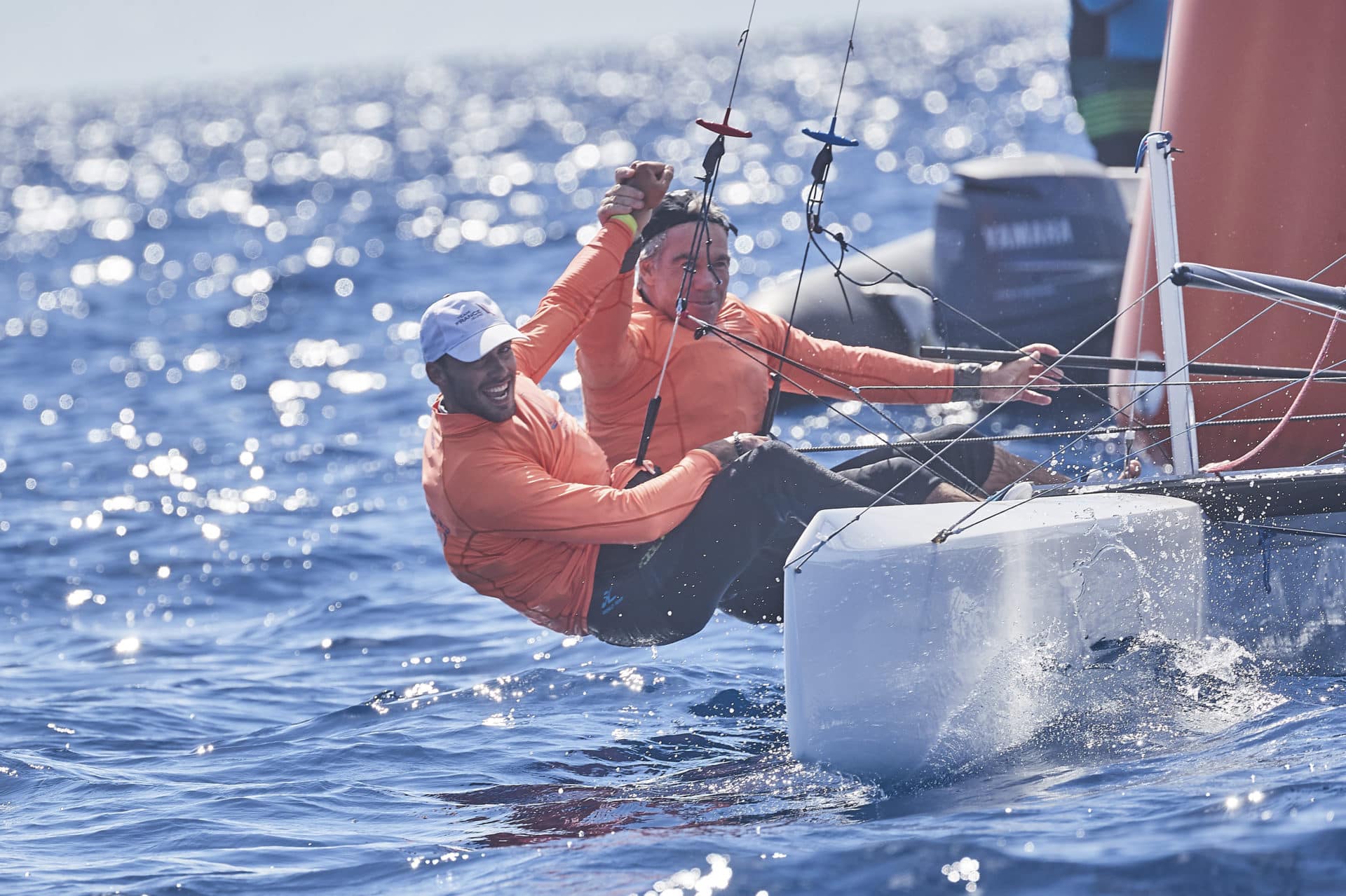 Ce dimanche – quatrième et dernier jour de compétition de la St. Barth Cata Cup – s’annonçait décisif, quatre bateaux étant encore en mesure de prétendre à la victoire à l’aube des deux ultimes courses. Le suspense était donc total au moment du départ sur l’eau et il s’est encore intensifié à l’issue de la première manche lorsque Gurvan Bontemps et Benjamin Amiot (Eden Rock St Barth) se sont retrouvés à égalité de points avec Jean-Christophe Mourniac et Antoine Rucard (Eden Rock Villa Rental) après leur victoire dans la course n°6. Il va sans dire que la tension, qui était déjà palpable, est montée à son maximum peu avant le coup d’envoi de la septième et dernière régate, d’autant que les Argentins Cruz Gonzalez Smith et Mariano Heuser (Architectonik) et les Toulonnais Orion et Antoine Martin (Mext Cardio) restaien t en embuscade. Mise sous pression, la paire Mourniac – Rucard, qui occupait la place de leader au classement à l’issue du tour de l’île hier soir, n’a pas failli, remportant ainsi cette dernière course, et par ricochet l’épreuve.