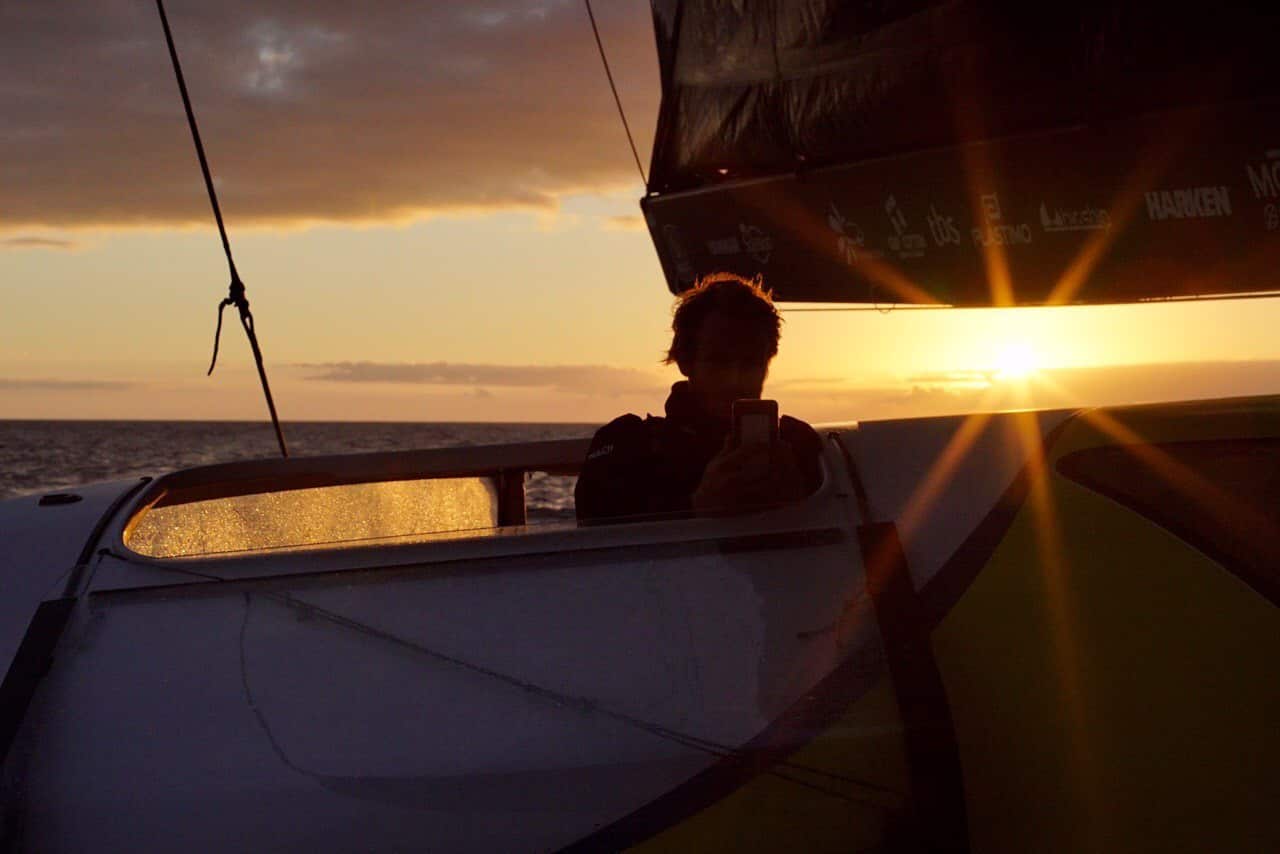François Gabart et Gwénolé Gahinet ont donc fait le choix de cette seconde option qui, pour le premier, présente des avantages : « C’est une trajectoire qui paraît plus rapide, un peu plus compliquée aussi, avec pas mal de manœuvres, des changements de voiles, trois transitions dans du vent faible à gérer. Mais qui ne tente rien n’a rien, et sur le papier, ça paraît être meilleur. Depuis le départ de Brest, on a rarement eu de grosses options stratégiques très différentes, ça a toujours été un peu fermé, c’est la première fois qu’on change vraiment de philosophie et qu’on se place différemment par rapport à un système météo. C’est intéressant, ça met du jeu et un peu plus de suspense. »
