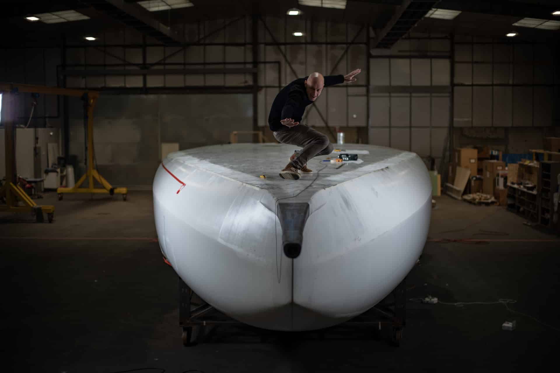 Entreprendre, Oser, Chercher, Innover : ce bateau se démarque sur plusieurs points, la carène de scow, la largeur modérée, les foils déportés, le pont flush deck, le cockpit reculé, la casquette à vision frontale, des poids reculés avec le cockpit et la zone de vie très en arrière.