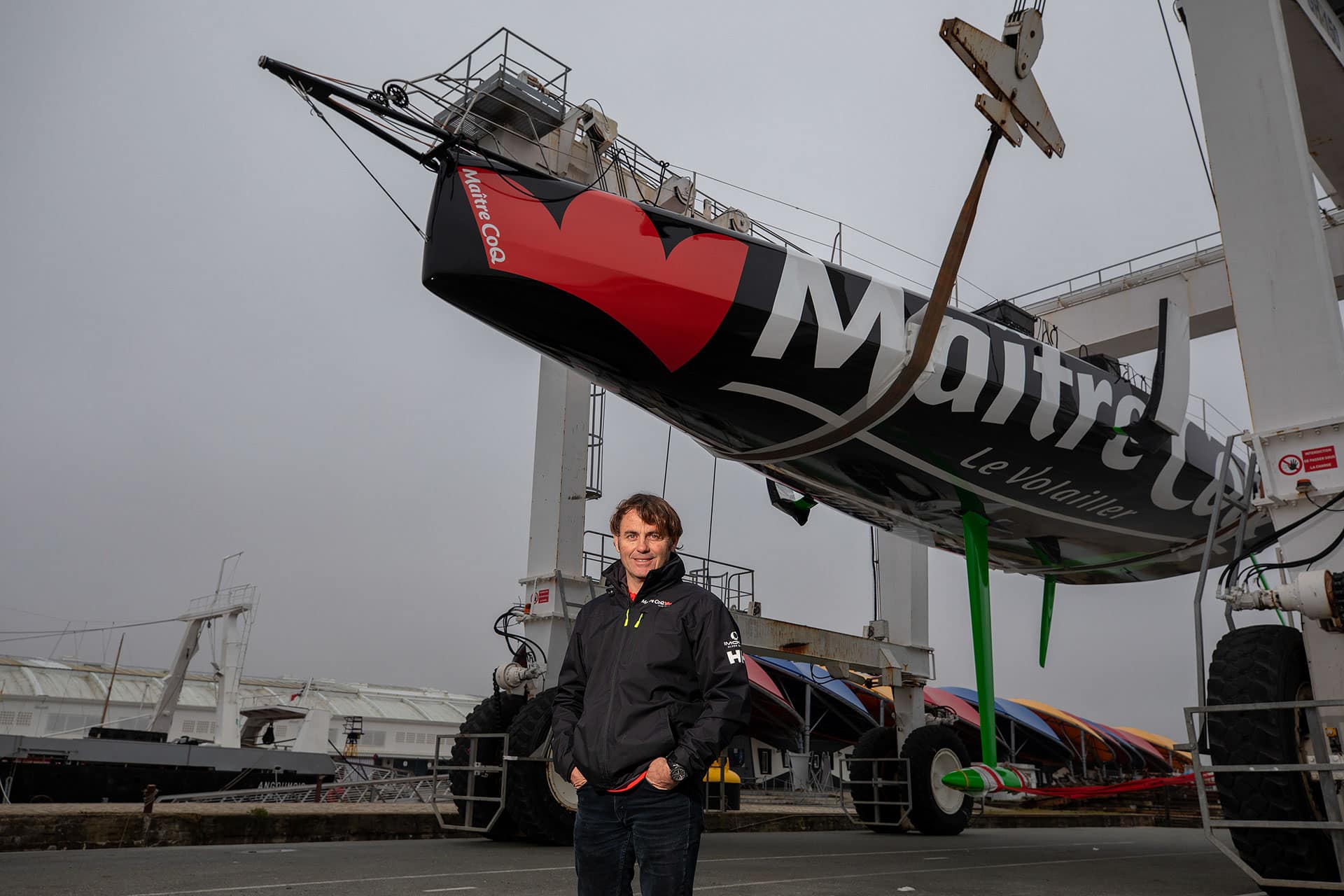 Entré en chantier le 1erdécembre dernier, Maître CoQ IV en est ressorti un peu plus de trois mois plus tard, ce mercredi 11 mars à La Rochelle. Un moment particulièrement important en cette année de Vendée Globe, d’autant plus que la décoration du plan VPLP-Verdier à foils a été entièrement revue : « Le design avait peu évolué depuis notre entrée dans la classe IMOCA, en 2012. Nous avons souhaité cette nouvelle décoration, d’abord pour tourner la page des 50 ans de la marque, que nous avons célébrés en 2019, mais surtout pour la mettre en cohérence avec nos nouvelles ambitions », explique le directeur général de Maître CoQ, Christophe Guyony.