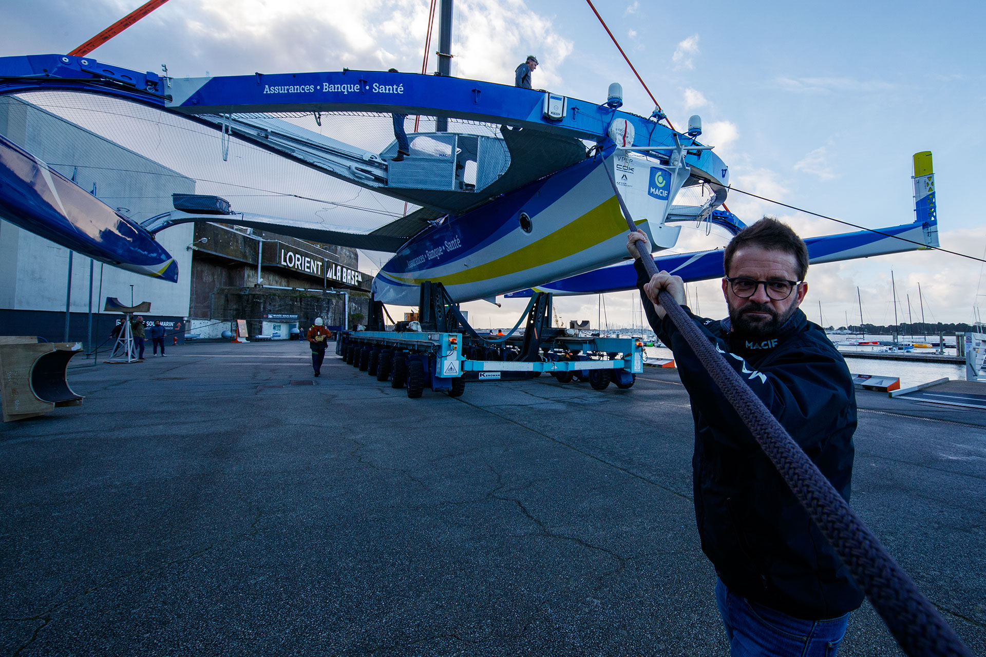 Le chrono tourne déjà. Aujourd’hui, le trimaran MACIF a été remis à l’eau et mettra dès demain le cap sur Port-la-Forêt. Il faudra alors une bonne semaine pour que les éléments essentiels à une bonne navigation soient validés.