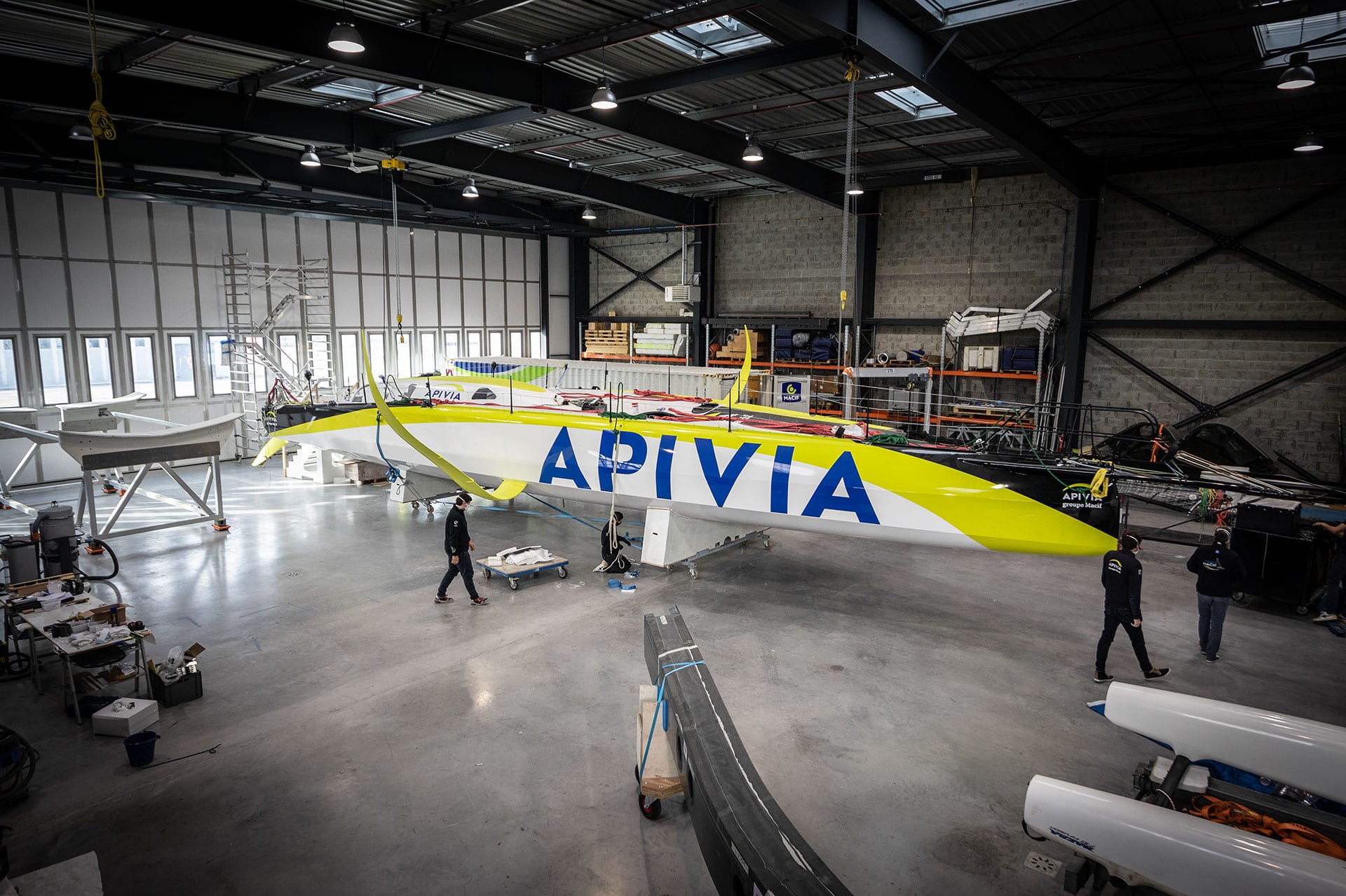 Le confinement aidant, APIVIA aura passé quatre mois en chantier cette année. Une aubaine pour Antoine Carraz, le directeur technique : « Après avoir totalement arrêté l’activité pendant quinze jours, nous sommes revenus au chevet d’APIVIA en mettant en place des procédures strictes. Deux équipes de trois personnes ont travaillé l’une le matin, l’autre l’après-midi, pour éviter les interactions. Nous avons travaillé moins vite, mais nous avions plus de temps. Par chance, comme le confinement a eu lieu juste avant la date initiale de mise à l’eau d’APIVIA (elle était prévue le 23 mars, ndlr), nous avions toutes les pièces et nous étions autonomes, et maîtres de notre planning ».