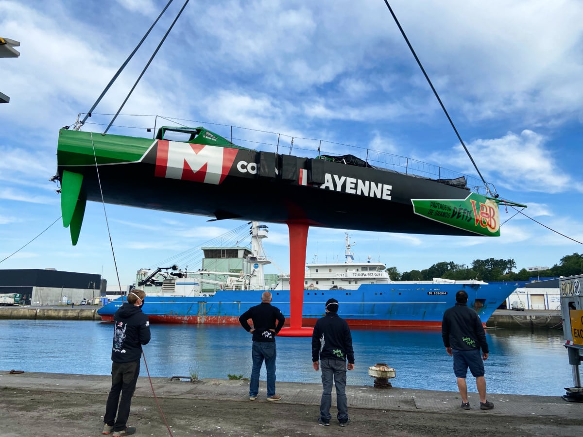C’est une étape importante, à la fois technique et symbolique, le monocoque V and B – Mayenne a été remis à l’eau et remâté ce matin à Concarneau. Il reste cinq mois à Maxime et son équipe avant le départ du Vendée Globe. Cinq mois de préparation, sur l’eau désormais.