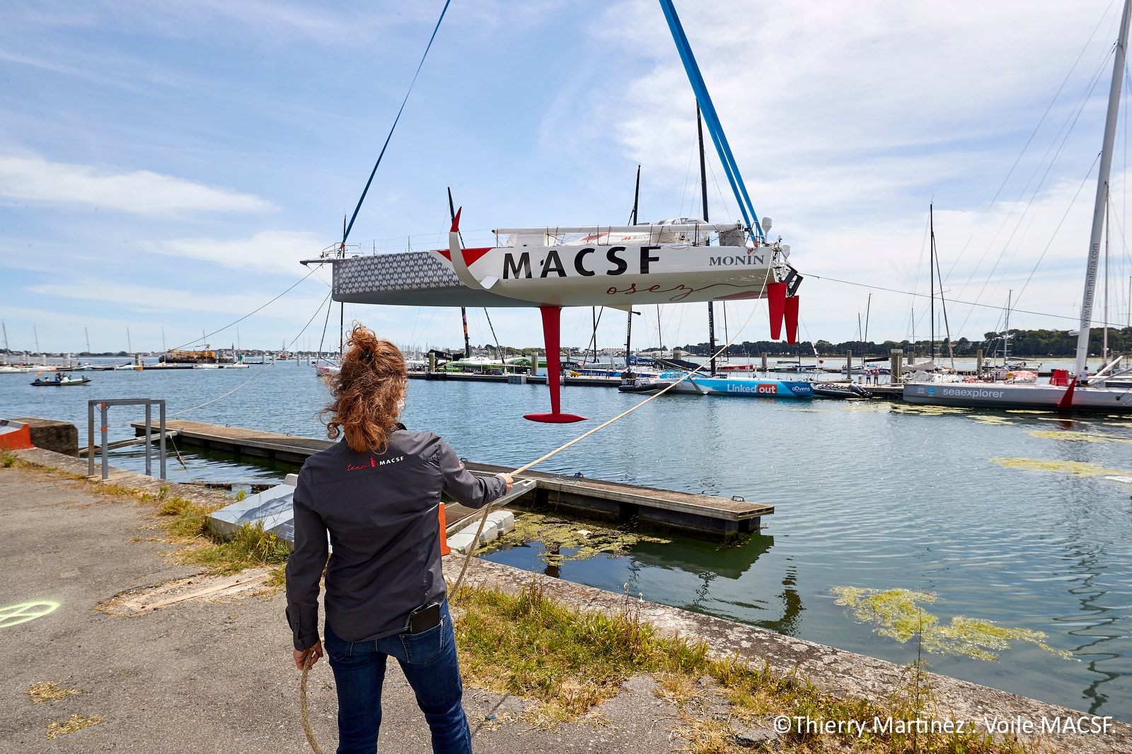 En chantier depuis le 14 février, MACSF a quitté son hangar et été mis à l’eau ce 21 mai à Lorient La Base. Isabelle Joschke va retrouver l’océan Atlantique à la barre d’un bateau optimisé et fiabilisé.