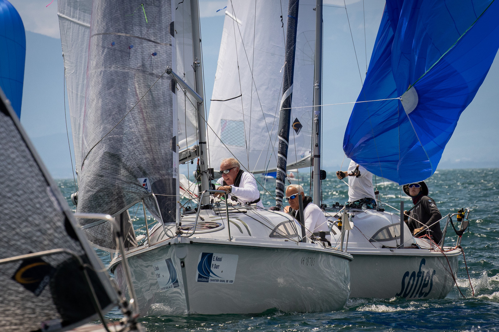 Le premier tour des 5 Jours du Léman a été bouclé en moins de 20 heures, grâce à du vent présent sur tout le lac. C’est « à toi à moi » sur l’eau, avec des changements de leaders quasi permanents.