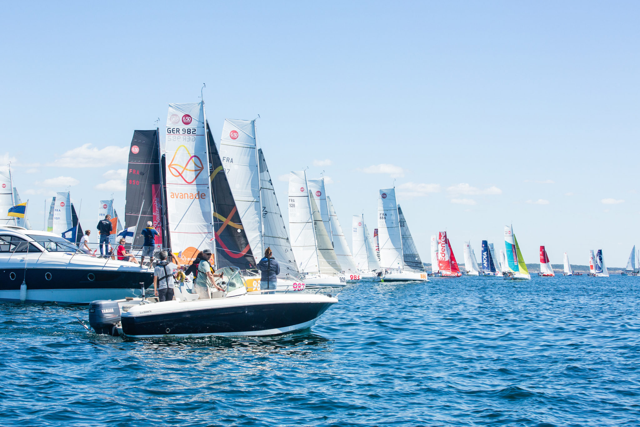 En attendant, c’est bien un Mini dernière génération qui s’est installé aux commandes de la flotte. Auteur d’un bon départ ce mardi après-midi dans un flux de sud-est soufflant entre 3 et 5 nœuds, Tanguy Bouroullec, sur son Pogo à foils aux couleurs de Cerfrance, a en effet été le premier à enrouler la bouée de dégagement peu avant 14 heures, puis le premier encore à déborder la marque « Armando » et à mettre le cap au large, une demi-heure plus tard. Du côté des Série, Léo Debiesse, sur son Pogo 3 Kelyfos menait les débats devant Quentin Riché (947 – Eliott) et Thomas de Dinechin (909 – Adameo – TF) mais cet ordre avait déjà évolué à plusieurs reprises à la sortie de la baie des Sables d’Olonne avec l’arrivée aux avant-postes de l’Allemand Lennart Bürke (943 – Vorpommern) notamment. Cette première hiérarchie n’a assurément pas fini d’évoluer au gré des évolutions de la météo ces deux prochains jours. « Clairement, sur cette première étape, il va falloir être prêt à s’adapter en permanence, être en mesure d’ajuster son plan d’action rapidement et bien observer les autres sans toutefois se laisser influencer. En somme : il va falloir faire preuve d’opportunisme », a commenté Pierre-Olivier Grand (824 – Kakaona). De quoi ouvrir en grand le champ des possibles et créer quelques surprises, ce que redoutent naturellement toujours les favoris, ainsi qu’en témoigne Fabio Muzzolini (945 – Tartine) : « C’est sûr que mentalement, c’est plus facile de partir dans des conditions clémentes pour se remettre en jambes que de partir dans de la baston. Cela étant dit, dans les petits airs, il y a toujours une part d’aléatoire et on a toujours peur que des concurrents partent à droite puis d’autres à gauche, et qu’ils aient un peu plus de vent que nous. Heureusement, avec l’expérience, on identifie davantage les coups à jouer et on sait dans quelles phases il faut rester éveillé, précis et concentré ». Un avis partagé par Michel Sastre (903 – Shaman). « Le sujet de cette première étape, ce sera avant tout la gestion de la fatigue car comme toujours, on aura tendance à vouloir aller à fond et à peu dormir. L’idée sera à la fois de ne pas se cramer et de ne pas se faire larguer », a souligné l’Aixois qui pourrait bien tirer avantage de son expérience en Méditerranée. « Chez nous, on est quand même un peu habitué à la pétole. Cela ne veut cependant pas dire qu’on est bon, mais on en a tellement fait, qu’on a appris à être un peu patient ». Sûr que savoir faire preuve d’un peu de philosophie sur cette première étape s’avèrera être un atout.