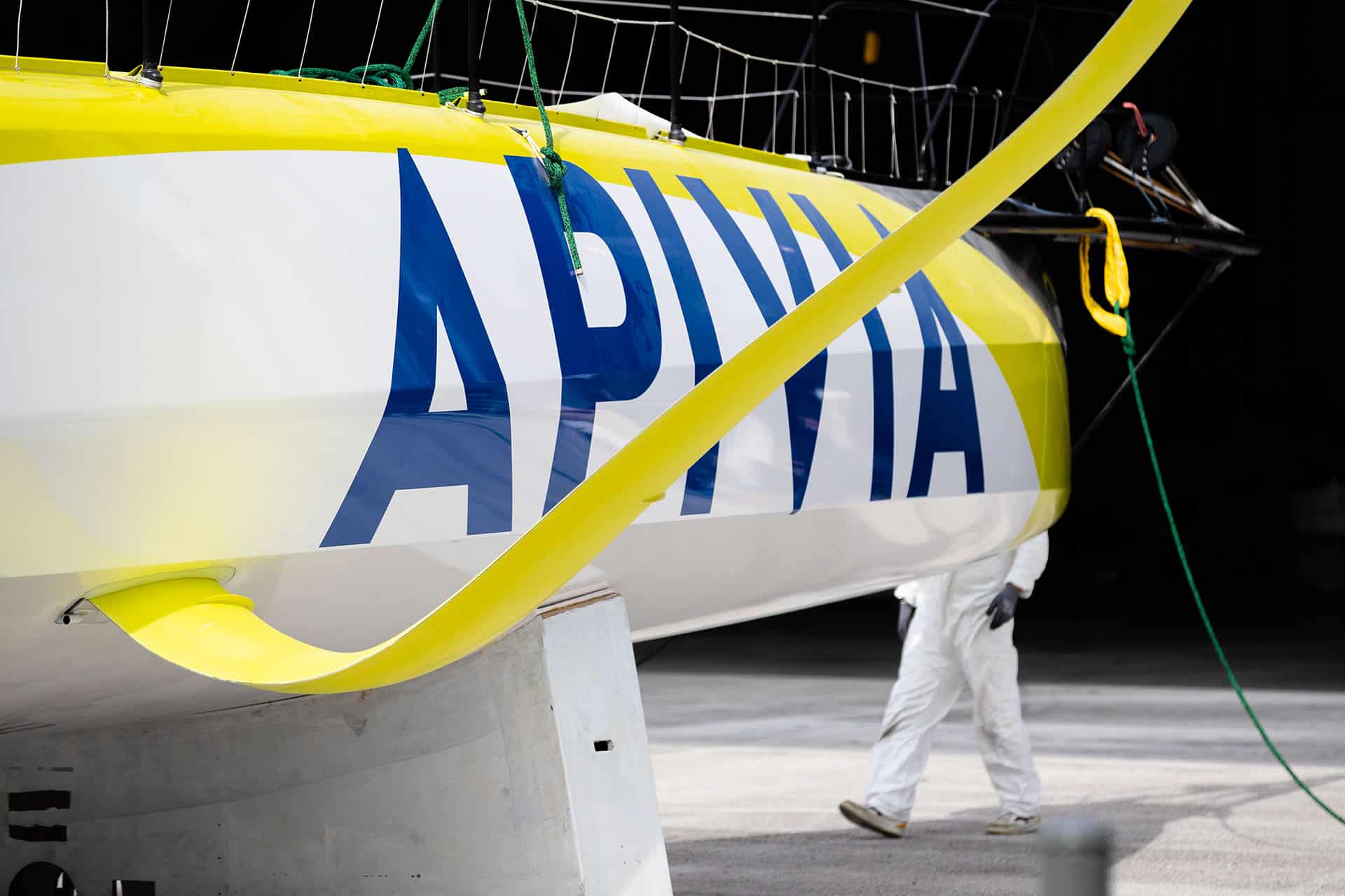 L’une des modifications les plus visibles de la dernière version d’APIVIA est sans conteste l’étrave qui a été « spatulée ». A l’instar de la partie avant d’une planche de surf, l’IMOCA de Charlie possède désormais une étrave plus haute et « spatulée » visant à maintenir le bateau plus longtemps au-dessus de l’eau dans les vagues sans qu’il ne retombe. « La forme initiale de la carène date de mai 2018 et après la Transat Jacques Vabre remportée avec Yann Eliès, cette modification faisait déjà partie des améliorations que nous souhaitions entreprendre. On espère surtout un gain au portant grâce à celle-ci ».