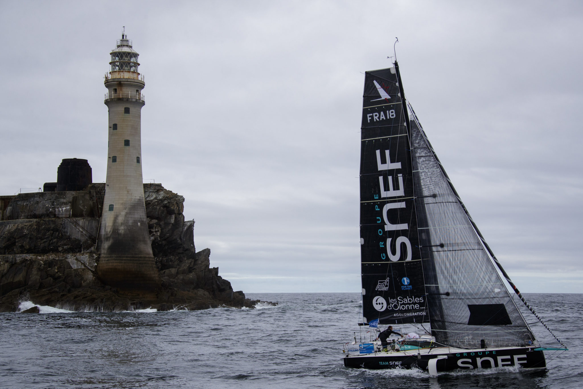 Quelques heures plus tard, le skipper de Groupe SNEF, leader sans discontinuer depuis la première nuit, conservait l’avantage, franchissant en tête le mythique phare irlandais, avec un demi mille (900 mètres) d’avance sur le vainqueur du dernier Vendée Globe (et double lauréat de La Solitaire du Figaro). En faisant demi-tour vers la Baie de Saint-Brieuc, distante de 320 milles (515 kilomètres), les deux leaders ont pu apercevoir les voiles de leurs poursuivants, dans l’ordre Frédéric Duthil, Corentin Douguet (NF Habitat), Fabien Delahaye (Laboratoires Gilbert), Alexis Loison (Région Normandie), Tom Laperche (Bretagne CMB Espoir) et le local Tom Dolan (Smurfit Kappa), autant de skippers qui, à mi-course, gardent toutes leurs chances de jouer la victoire d’étape à Saint-Quay-Portrieux.
