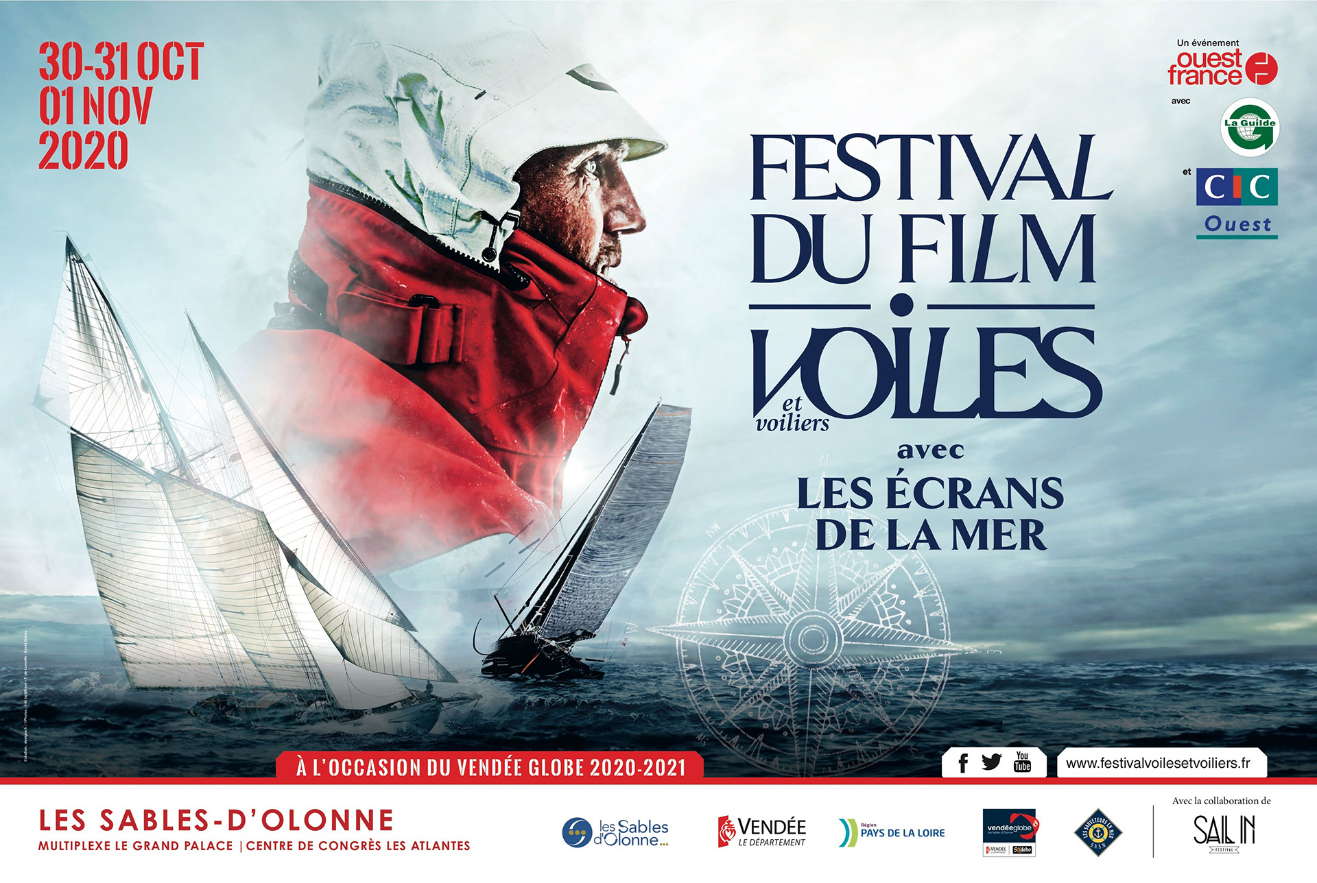 Pour sa première édition, le Festival du film Voiles et Voiliers avec les Écrans de la Mer, organisé en partenariat avec CIC Ouest, se déroulera aux Sables-d’Olonne (Vendée) du 30 octobre au 1er novembre. Durant trois jours, au Multiplexe Le Grand Palace et au Centre de congrès Les Atlantes, la mer et la voile seront à l’honneur. Une invitation au rêve et à l’évasion avec une sélection composée en grande partie de documentaires inédits qui fera voyager les spectateurs du grand Nord aux mers de Sud en passant par Nazaré et bien sûr, autour du monde en solitaire ! Un événement ouvert à tous.