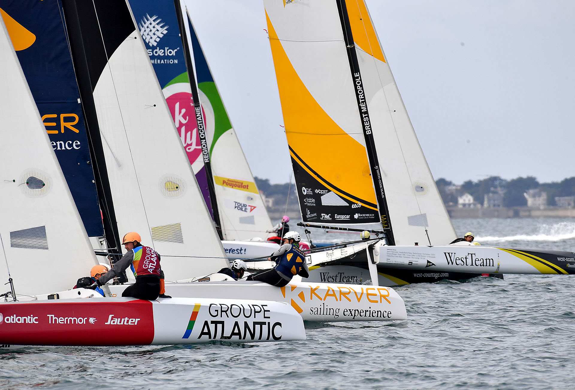 Première manche difficile pour tous les monotypes. Comme une lente farandole sur la ligne de départ, les J /80, J/70, Diam 24, Mach 6.50, Open 570 et 750, poussés par un vent faible n’ont pas tardé à lâcher les chevaux après une petite heure de course lente mais ô combien tactique. Le ventilateur s’étant remis en marche, nettoyant au passage le ciel gris, il fallait voir les accélérations fantastiques, la glisse pure sous spi, et le rappel à fond sur les bords de près ! Chez les Diam 24, les Havrais sur Karver Systems montraient d’emblée qu’ils maîtrisaient parfaitement les manettes du petit trimaran, suivis par Groupe Atlantique. Lors de la deuxième manche, les Sudistes de Pink Lady ne lâchaient rien dans le tableau arrière des Bretons. Sur le rond des ETF26, les as du vol libre se sont battus comme des chiffonniers. Les équipages de Jean-Christophe Mourniac (Team Pro), Billy Besson (Ethik), Jean-Pierre Dick (Ville de Nice-ABC Arbitrage) ou encore Yvan Bourgnon (Zizi to Fly) frisait parfois la correctionnelle au passage des bouées donnant un spectacle de toute beauté.