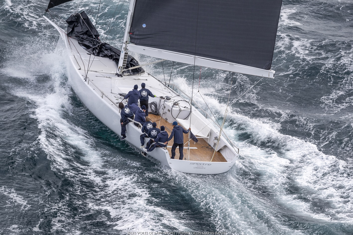 Le groupe des IRC2 réunit un plateau particulièrement relevé en terme d’excellence sportive. On l’observait dès la phase de départ peu après 11 heures 15 ce matin, quand les 8 protagonistes se jetaient littéralement et dans un bel ensemble sur la ligne de départ. Lancé tribord amure, Leaps&Bounds, Le Vills-Vismara 62 de Jean Philippe Blanpain était le plus prompt à envoyer le spi et à glisser à toute allure vers la sortie du Golfe. Il résistait magistralement aux retours express de Spectre, le Frers 60 de Peter Dubens à bord duquel officie Nick Rogers, le médaillé d’argent Olympique de 470 Britannique. Les Mylius 60 Sud de Maurits d’Orange, et Lady First3 de Jean-Pierre Dreau accompagnaient un Wallyno – le bateau de Benoit de Froidmont, le président de l’International Maxi Association – fraichement sorti de chantier dans ce superbe premier bord de portant au contact. Le Wally80 Ryokan2 marque cependant les esprits ce soir, les hommes de Philippe Ligier s’impose en temps réel et en temps compensé, devançant Spectre et Leaps&Bounds au terme d’une empoignade particulièrement serrée. En IRC 3, c’et Nina, le BX60 de Milan Markovic qui s’impose en temps réel après réduction du parcours à hauteur de Cap Camara.