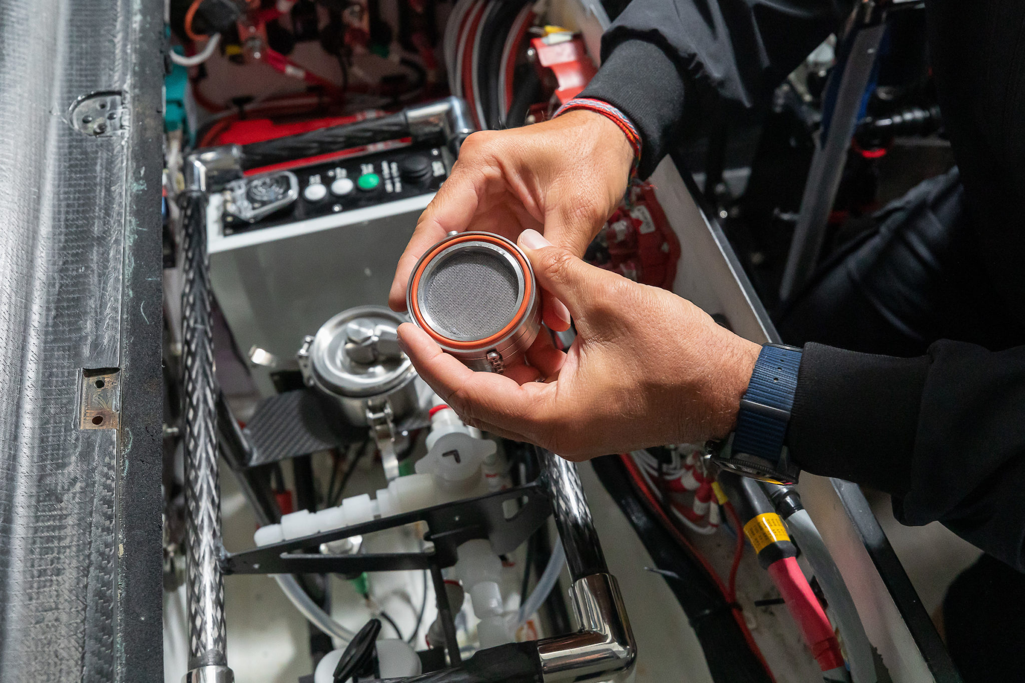 Installé à bord du monocoque Newrest – Art & Fenêtres de Fabrice Amedeo grâce au soutien d’Onet et Éléphant Bleu, le capteur microplastiques filtre l’eau de mer en continue en navigation. Chaque jour pendant la course, le skipper change les filtres et stocke les échantillons prélevés à bord de son bateau, afin de les remettre aux scientifiques à son arrivée : l’Ifremer (Lab. DCM) et l’Université de Bordeaux (Lab. EPOC et Lab. CBMN) soutenue par Gobi, la gourde française éco-conçue, se partagent les travaux d’analyse. Les résultats quant à leur origine, leur concentration, et leur toxicité sont en cours. L’IRD, Lab. d’Océanographie Physique et Spatiale, réalisera une cartographie de la répartition de ces microplastiques sur le trajet de la course.