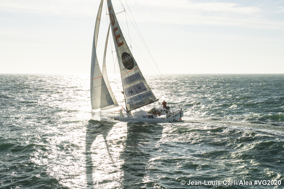 Les petits airs de la journée ne sont pas favorables aux foilers – tous décalés entre 50 et 75 milles à l’Ouest des « sudistes » – qui peinent à dépasser les 10 nœuds de vitesse. Auteur d’un très beau début de course, Nicolas Troussel (CORUM – L’Epargne), premier d’entre eux, pointe en 6e position.