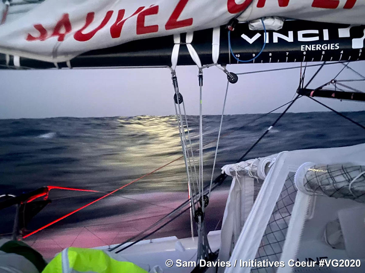 Car derrière, la pression devient de plus en plus forte : Jean Le Cam (Yes We Cam!) tient tête à quatre foilers qui ne peuvent probablement pas donner toute la puissance possible avec une mer de moins en moins rangée : il reste une houle de Nord-Ouest dans une brise de Sud-Ouest et l’anticyclone de Sainte-Hélène a des velléités à se glisser sous l’Afrique du Sud. Alan Roura (La Fabrique) en sait quelque chose, lui qui s’est fait rattraper par les hautes pressions et galère au large de Tristan da Cunha ! Alors que Clarisse Crémer (Banque Populaire X) s’est fait franchement ralentir dans la nuit en passant sous les reliefs de l’île de Gough et avec Romain Attanasio (PURE-Best Western Hotels & Resorts) dans son Est, la jeune skippeuse a tout intérêt à piquer rapidement vers le Sud-Est pour ne pas se faire phagocyter par les hautes pressions.