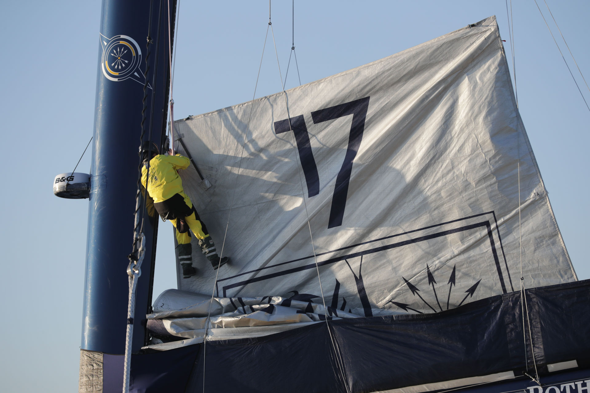 « Là, c’est un peu la libération. On a eu un départ assez rapide, puis un retour suivi d’une bonne quinzaine de jours de réparation et de remise en état du bateau et enfin une longue période d’attente avec toujours cette incertitude de savoir si on part ou pas pendant les fêtes. On est content aujourd’hui de pouvoir prendre cette fenêtre. Ce stand-by et cette attente, cela fait partie des tentatives de record, c’est le jeu ! »