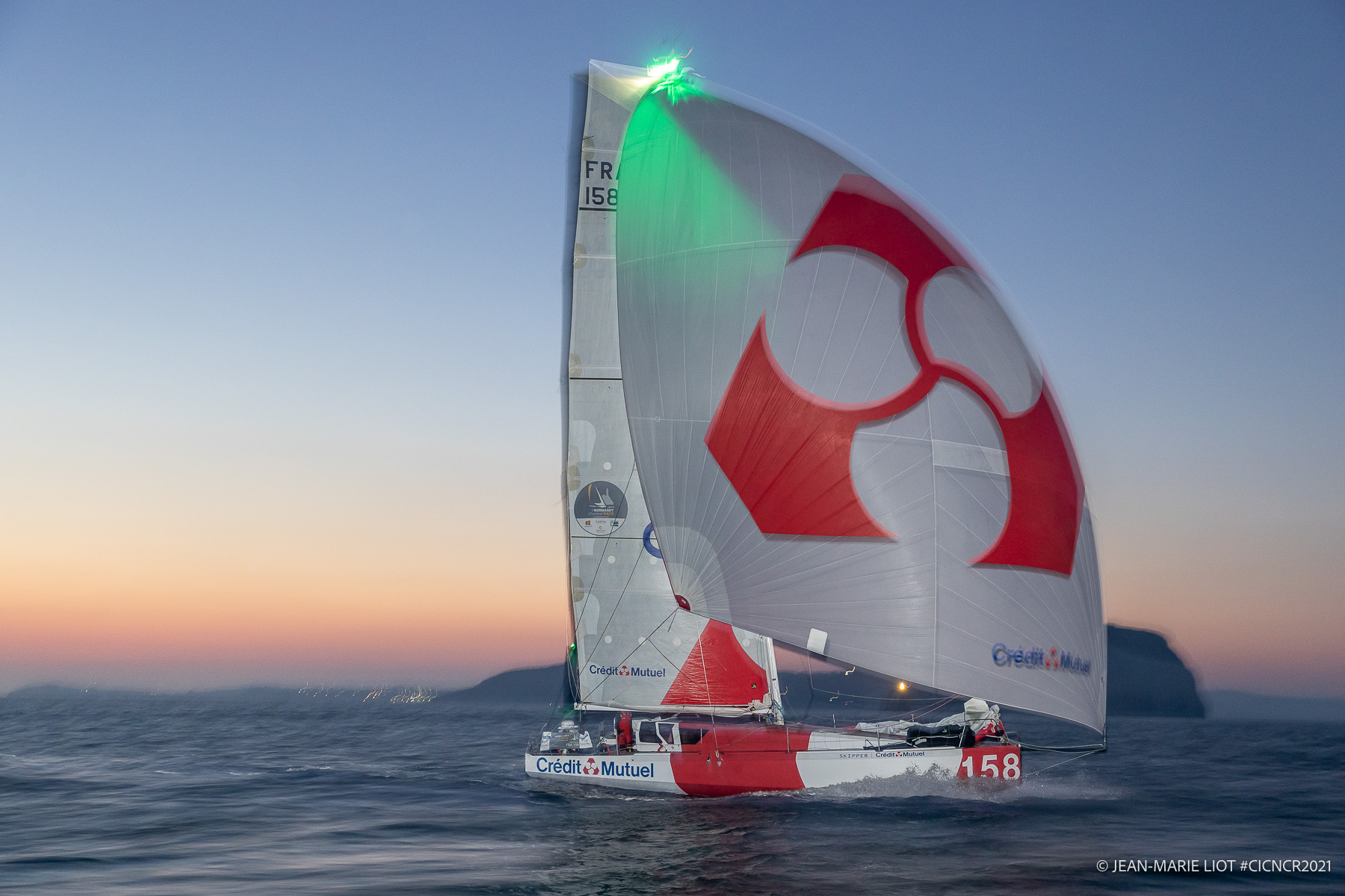 Les leaders de cette édition 2021 sont attendus à Land’s End vers 22h ce soir. Crédit Mutuel (158) et Redman (161) devraient passer la pointe ouest de la Cornouaille à l’heure de l’étale de basse mer et ainsi éviter la renverse de courant. Un scénario qui permettrait au deux duos de creuser encore plus l’écart avec leurs poursuivants qui à contrario vont eux subir le courant contraire de la marée montante. Alors que les premiers passages à niveau de Barfleur et du Solent s’étaient pour l’instant déroulés dans des timings plutôt favorables, celui du passage de Wolf Rock peut s’avérer décisif quant à l’issue de l’épreuve. Le vent de secteur sud-est modéré présent actuellement sur zone va se maintenir dans la soirée et ainsi permettre aux marins d’enrouler la pointe ouest de l’Angleterre sous spi et de continuer à porter cette toile toute la nuit. Une rotation de vent forcissant de Sud-Est vers Est est attendue demain pour la remontée de la Mer Celtique. Les Class40 devraient alors naviguer au reaching leur permettant d’afficher de belles vitesses pour atteindre Tuskar Rock en fin de journée. Si ce scénario s’avérait vrai, le phare de la pointe sud-est irlandaise serait alors atteint en un temps record de 48h. Du jamais vu sur l’épreuve…
