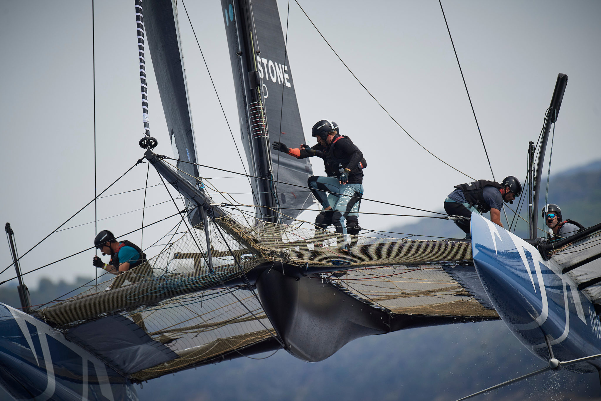 » C’est une belle compétition entre les deux équipes « , a commenté Benoit Deutsch à bord du bateau du comité de course alors que les deux équipes franchissaient la ligne d’arrivée en trombe. « La stabilité des deux équipes sur les foils et le travail acharné des équipages à bord pour la conduite du bateau leur donnent cette vitesse supplémentaire », a-t-il ajouté.