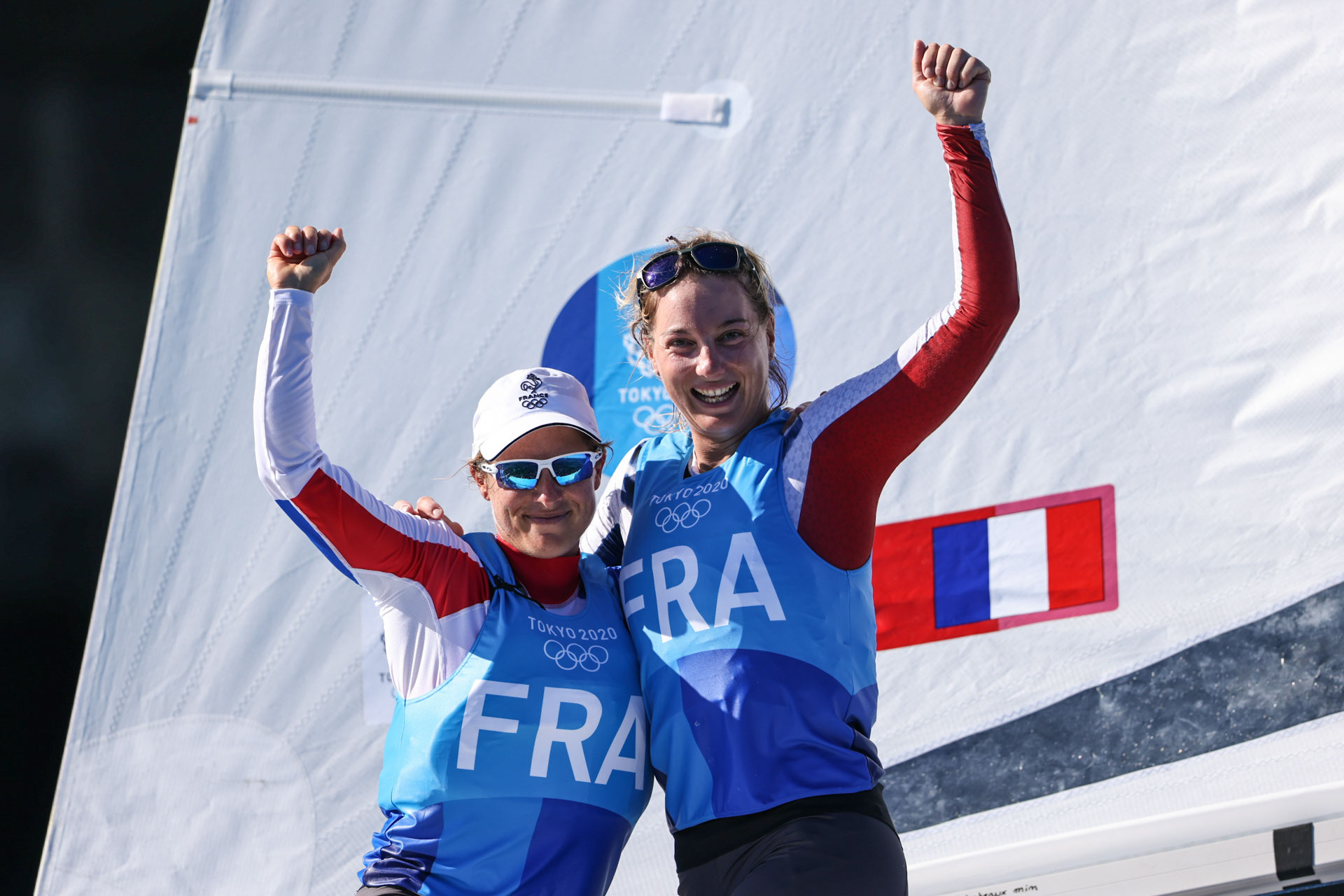 Le très bon résultat de Tokyo cache quand même un léger goût amer, « il me reste quand même une pointe de déception quant au résultat. On venait chercher l’or et on repart avec le bronze. » confie Camille. Si le résultat n’a pas été à la hauteur de leurs espérances, les deux navigatrices ont bien conscience de leurs erreurs, « avec le recul, on ne pouvait pas prétendre à mieux. On n’était pas prêtes pour avoir l’or avant la medal race, on a fait des erreurs, notamment sur les départs, qu’on n’avait pas le droit de faire. Le bronze est à la hauteur de ce que l’on a produit pendant la semaine » explique Aloïse. Le constat est semblable pour Camille : « On a tendance à se focaliser sur la medal race, mais à ce moment là c’était vraiment impossible de faire mieux, on est arrivées à ce moment-là avec le pire scénario possible. Je n’ai donc pas de regrets sur la finale, c’est plutôt d’avoir été impuissantes en vitesse sur les phases de qualifications. ». Si le tableau dressé peut paraître plutôt sombre, Camille et Aloïse retirent aussi énormément de positif de cette semaine, « le point ultra positif, c’est qu’on n’a jamais rien lâché, on avait vraiment un super état d’esprit ! » positive Camille. Aloïse quant à elle retient « un investissement sans failles. On a été mises en difficulté et on n’a jamais rien lâché. Je retiens aussi notre cohésion avec Camille, on est vraiment restées soudées du début à la fin. »