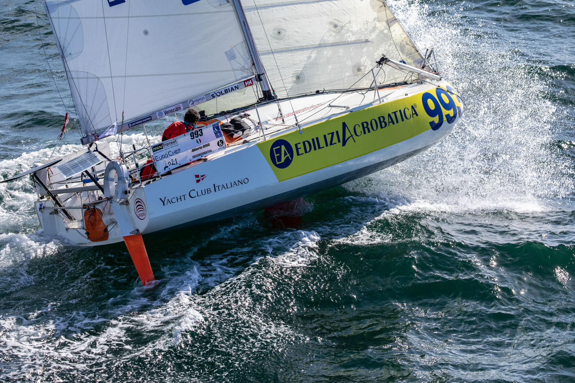 Le match est donc relancé à tous les étages. Même chose chez les Proto, y compris pour Piers Copham (791 – Voiles des Anges). Le Britannique, qui a clairement essuyé le plus fort du vent, avec 43 nœuds de vent moyens et des rafales à 50, pointe actuellement en 5e position dans sa catégorie. Sa vitesse de progression, plutôt lente dans les conditions actuelles, laisse toutefois à penser qu’il a laissé quelques plumes dans la bataille. Aux avant-postes, la bagarre se poursuit entre Tanguy Bouroullec (969 – Tollec MP/Pogo) et Pierre Le Roy (1019 – TeamWork). Désormais à la latitude de l’archipel de Madère, les deux leaders se rendent coup pour coup mais depuis hier soir, l’avantage est redonné au skipper Finistérien. Après avoir compté jusqu’à 45 milles de retard sur son adversaire, ce dernier occupe actuellement les commandes avec une avance de 17 milles sur son dauphin. A moins de 24 heures de l’arrivée, cela lui suffira-t-il pour l’emporter ? Rien n’est moins sûr car aux abords de l’île de La Palma, le vent risque de tamponner. Les derniers milles pour rejoindre la ligne d’arrivée pourraient donc ne pas être si simples. Le verdict est attendu entre 11 heures et 15 heures demain et les paris sont ouverts !