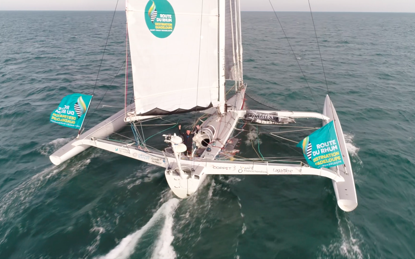 En 2018, il réalise son rêve en prenant le départ de la Route du Rhum grâce à une prothèse électronique étanche. En 2022, il met tout en œuvre pour continuer l’histoire.