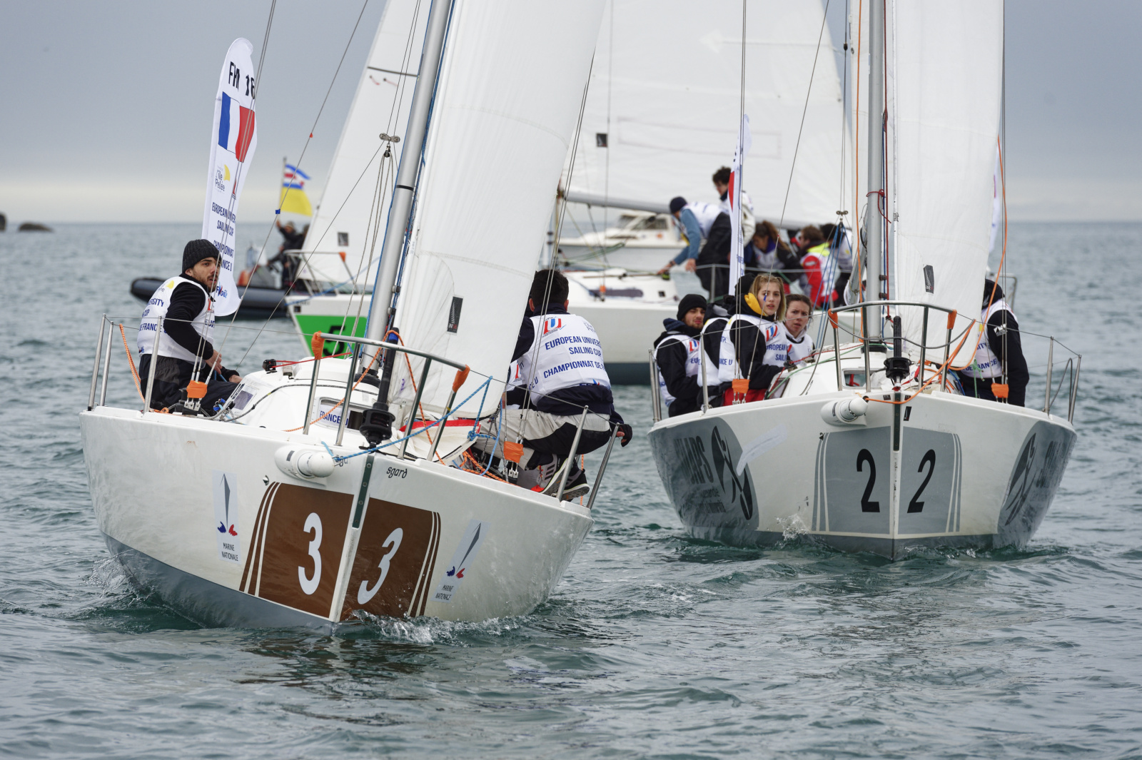 Au total, 10 courses ont été disputées dans la rade par des équipages plus que motivés à gravir les places du classement général. Tout au long de la journée, les flights se sont enchaînés et un premier classement se dessine. C’est l’HYDRO Sailing Team Le Havre qui est en tête au classement provisoire, suivi de UBS Lorient 2 et de UNICAEN – ASSUCherbourg ! Les équipages ont pu naviguer sur un plan d’eau assez calme en compagnie des dauphins et du phoque, offrant un très beau spectacle toute l’après-midi.
