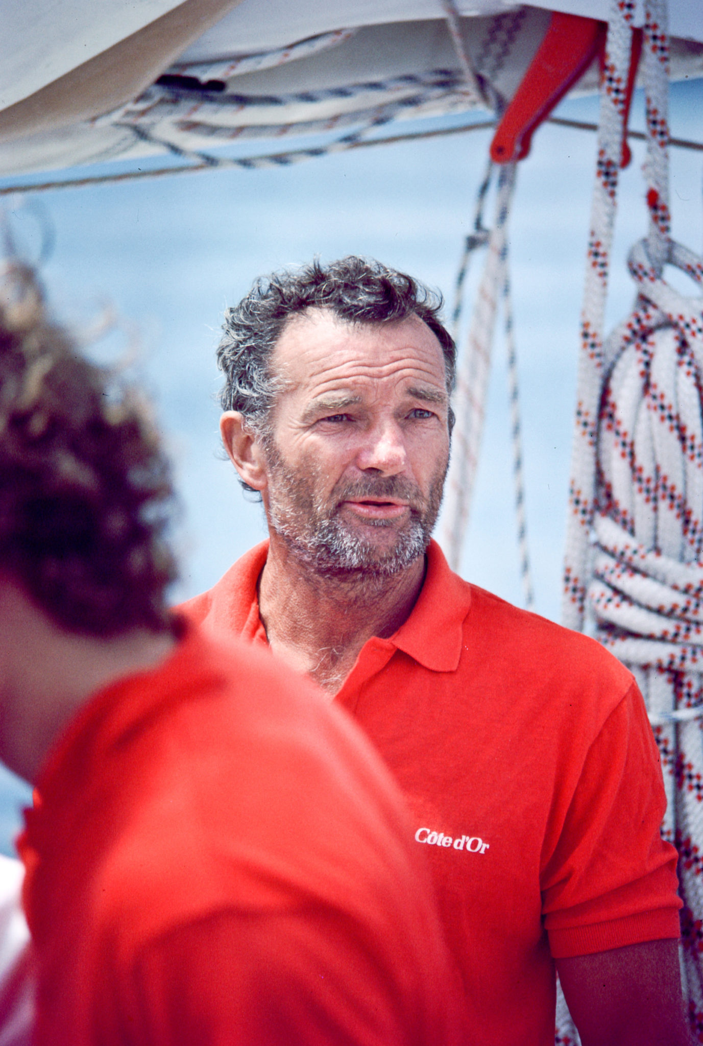 A bord de Pen Duick VI, et même s’il y a une guitare, des carnets de chants et du Châteauneuf du Pape – le vin préféré de Tabarly – les emménagements sont nettement moins douillets, et l’équipage pousse le ketch dans ses derniers retranchements. Des images tournées à bord, montrent des équipiers hors-quart en slip, grimpant à toute vitesse sur le pont sans harnais, afin d’aider à affaler l’immense spi lors d’un départ au lof dans un grain puissant, le bateau roulant bord sur bord. Un miracle qu’il n’y ait pas eu de blessés. Le favori va perdre toute chance de l’emporter quand son mât s’écroule sur le pont. Un nouveau mât sera installé en Afrique du Sud. Un autre équipage passe plus de temps à utiliser la caisse à outils qu’à régater. Sur ce bateau battant pavillon britannique, un blondinet néozélandais de 25 ans, dispute la première de ses cinq Whitbread consécutives. Il se nomme Peter Blake, et a été enrôlé comme équipier sans spécialité. Dans son journal de bord, il raconte : « Nous n’avons encore jamais navigué sur ce bateau, et le départ est notre première sortie en mer ! On termine les emménagements intérieurs dans le Solent. Heureusement, il fait beau… Nous n’avons pas vérifié que les toilettes n’étaient pas connectées, et au bout d’une semaine, on se rend compte que tout part dans les fonds où sont stockées les conserves. Et comme dans la panique du départ, nous avons rangé les boîtes sans les référencer, les étiquettes se sont décollées et quand on en ouvre une, c’est la surprise ! »