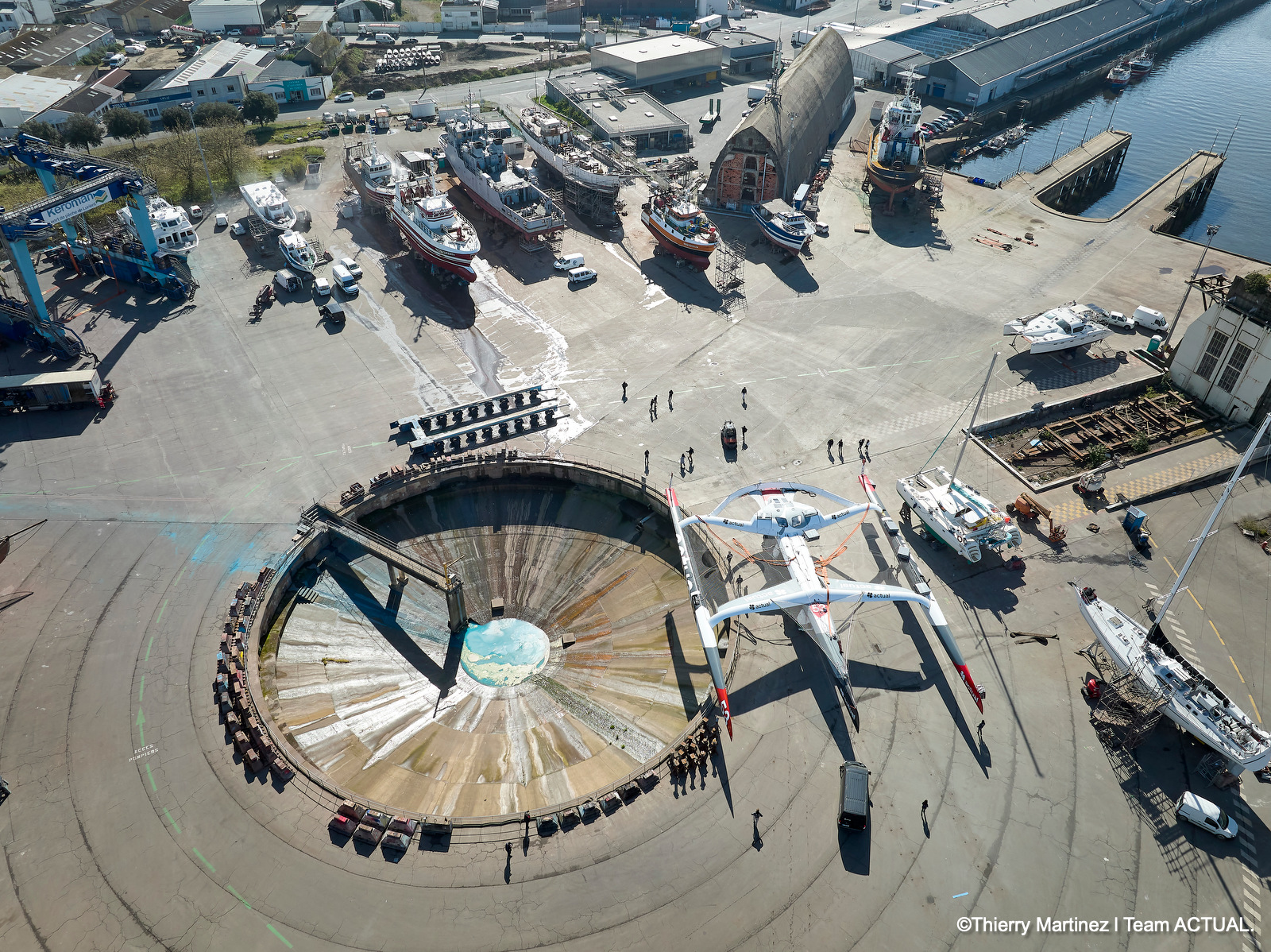 Clap de début de saison pour Yves Le Blevec et son équipe ! L’Actual Ultim 3 a été remis à l’eau ce mercredi, à Lorient. Yves et son équipe ont axé leur chantier d’hiver sur l’analyse de performance et, saison solitaire oblige, la « rentabilité » des manœuvres.