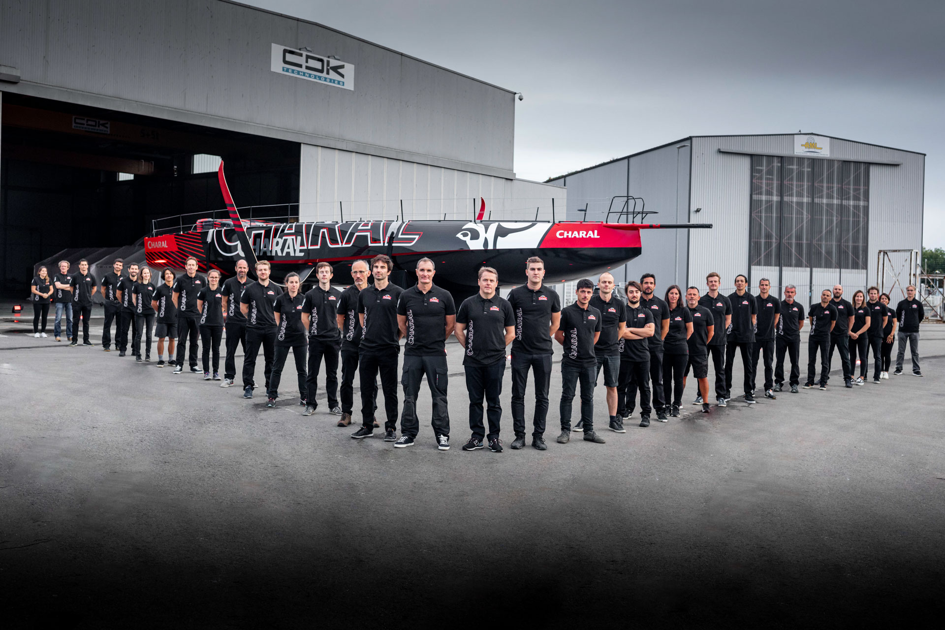 Ils sont une quinzaine d’ingénieurs, dont cinq au sein de la Charal Sailing Team, à s’être relayés pour designer Charal 2. Ensuite, plus d’une centaine de spécialistes se sont affairés à la construction du bateau, à dessiner et usiner l’ensemble des pièces, quasiment toutes des prototypes. « On a approché les 35 000 heures de conception et 40 000 heures de construction », souligne Pierre-François Dargnies, directeur technique. « Dévoiler Charal 2 est une récompense et un grand moment d’émotion pour l’équipe et toutes les entreprises qui ont participé à ce projet », s’enthousiasme Jérémie Beyou.