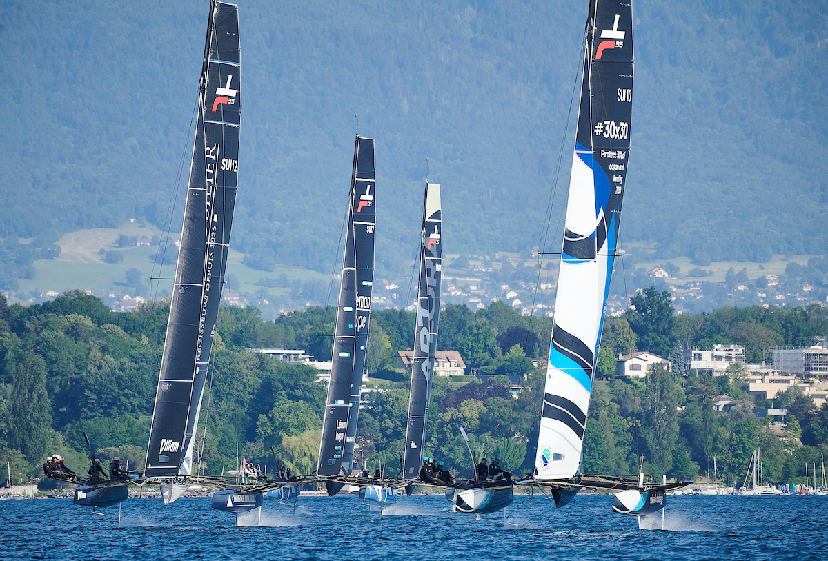 Quatre étapes se sont déroulées sur le lac Léman lors de la première partie de saison du TF35 Trophy. Les vainqueurs 2021, Realteam for Léman hope mené par Jérôme Clerc, ont frappé fort en remportant d’entrée de jeu leur Grand Prix à Nyon. Mais la détermination d’Alinghi Red Bull Racing a permis à l’équipe d’Ernesto Bertarelli de prendre l’avantage à mi-saison en remportant deux victoires consécutives lors du TF35 Mies et de la Genève-Rolle-Genève. Seuls deux points séparent à ce jour les deux protagonistes qui comptent respectivement quatre et six points au général. La partie est donc loin d’être terminée.