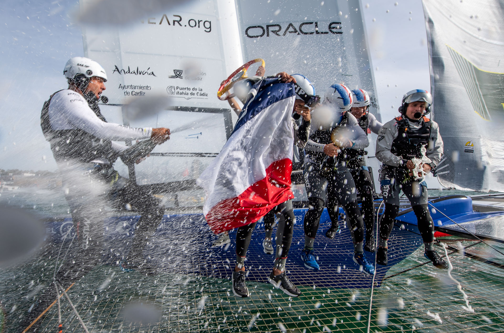 Quentin Delapierre, Manon Audinet, Kevin Peponnet, François Morvan, Matthieu Vandame, Olivier Herledant et Timothé Lapauw ont laissé éclater leur joie au moment de franchir la ligne d’arrivée ce dimanche, à un cheveu (3 secondes) des Américains. Les Français remportent à Cadix leur tout premier Sail Grand Prix, un an jour pour jour après l’arrivée du pilote Quentin Delapierre dans la league internationale des F50. Cette victoire couronne une montée en puissance régulière de l’ensemble du team tricolore, déjà finaliste au Danemark fin août, qui remonte à la 3e place du classement général provisoire de la saison 3 de SailGP.