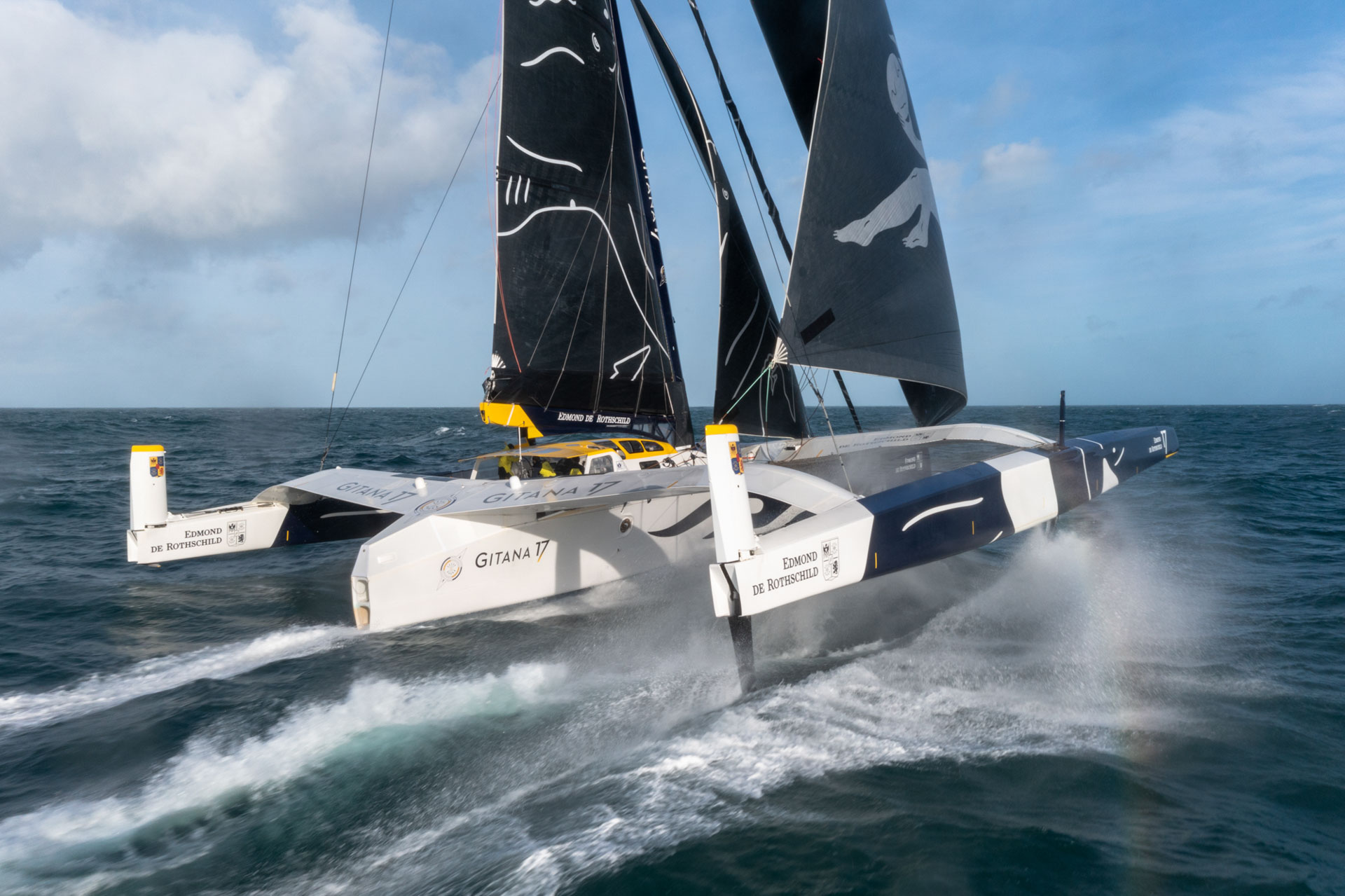 Après avoir largué les amarres à Lorient au petit matin ce dimanche, le Maxi Edmond de Rothschild a franchi la ligne de départ du Trophée Jules Verne, au large de l’île d’Ouessant, à 14h 9min 30s. À la barre du géant volant de 32 mètres, Charles Caudrelier, Franck Cammas et leurs quatre équipiers s’élancent à l’assaut du prestigieux chronomètre autour du monde. L’objectif : battre le record de 40 jours, 23 heures et 30 minutes établi en 2017 par Francis Joyon et les hommes d’IDEC. Afin d’y parvenir, les marins du Gitana Team devront être de retour au large de Brest et du Phare du Créac’h avant le 25 mars 2023 à 13h 38min 59s. Bien que singulière, la fenêtre météo qui se présente devant les étraves du Maxi Edmond de Rothschild mérite d’être tentée car elle pourrait bien permettre à l’équipage aux cinq flèches de saisir de belles opportunités.