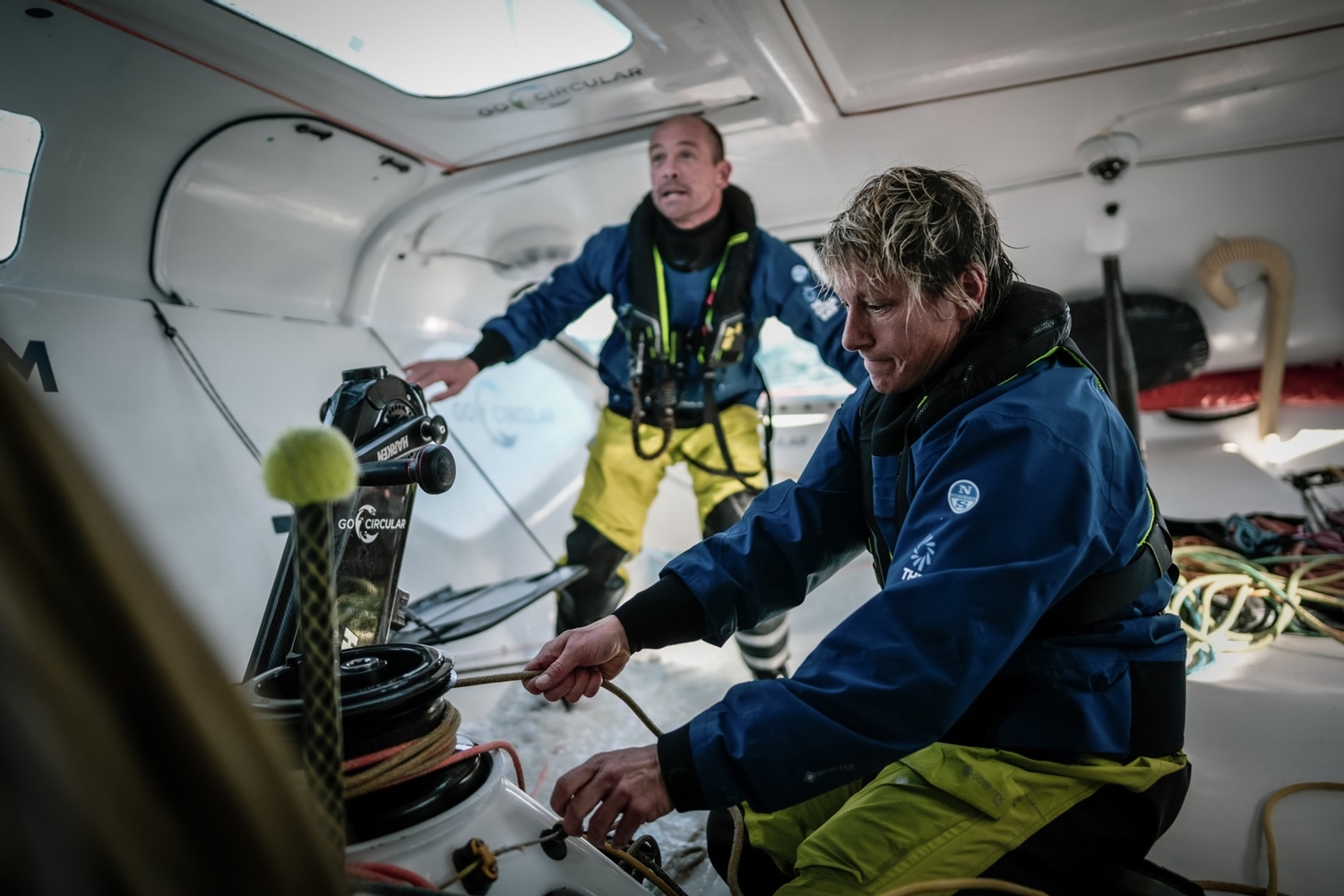 En IMOCA, lorsque vous êtes de quart, le fait de devoir surveiller les données est très impliquant et stimulant sur le plan mental. Vous devez presque faire appel à votre sixième sens, car vous ne sentez pas le vent sur votre visage, vous n’êtes pas arrosé et vous ne pouvez pas voir les vagues. Il faut donc se concentrer sur la sensation du bateau et sur l’observation des chiffres. Évidemment, il y a aussi le facteur physique. Le bateau est très inconfortable et les mouvements violents à tel point qu’il peut être très difficile de dormir et de se déconnecter, à cause des bruits, des alarmes et toutes les stimulations mentales qui vous entoure. Donc, je pense que courir cette étape en IMOCA est sans doute plus difficile.”
