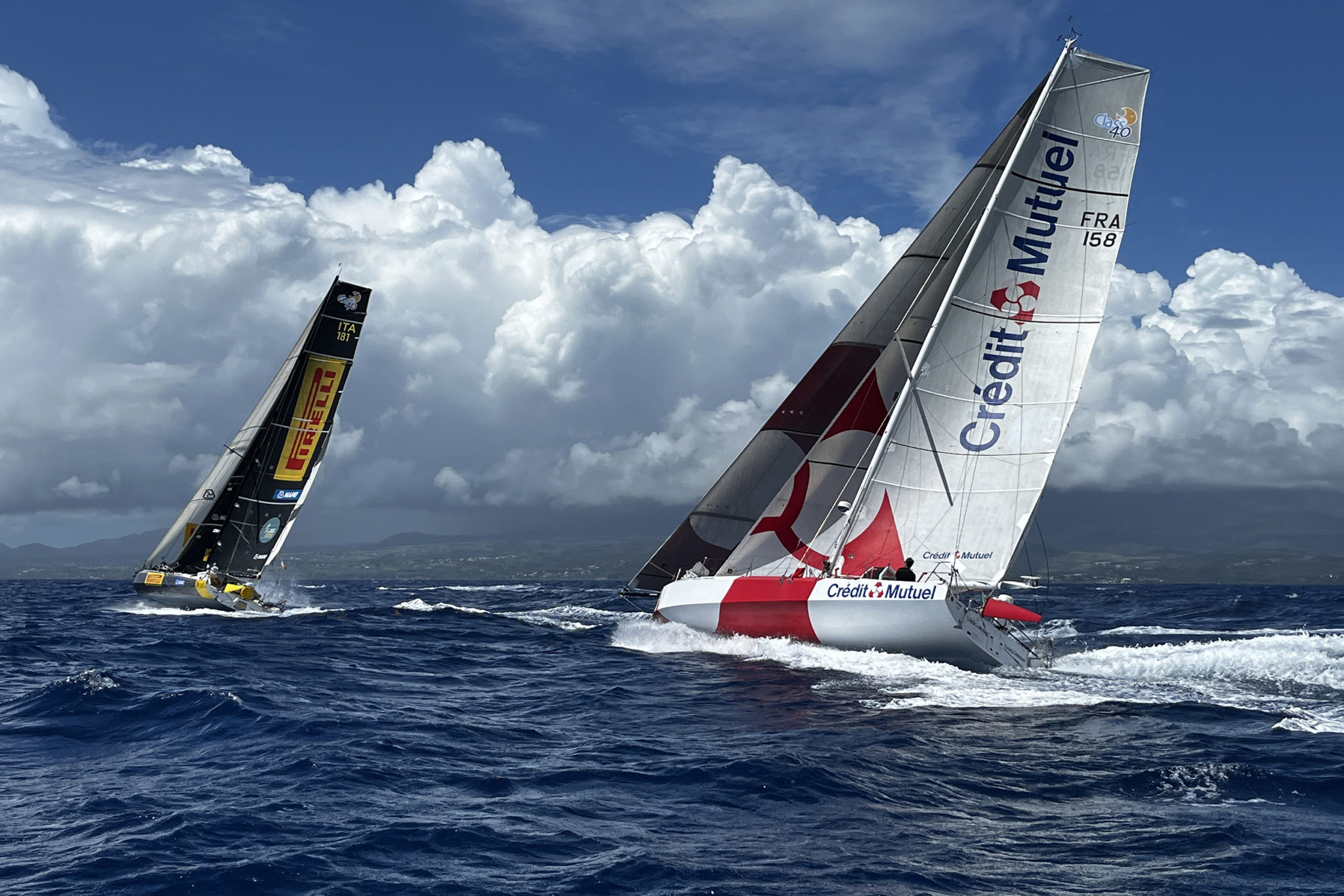 f Ambrogio, deuxième de la dernière Route du Rhum – Destination Guadeloupe, à bord de son plan Italien Alla Grande-Pirelli, est parvenu à se glisser au vent de son compatriote Alberto et ses équipiers Italo-Espagnol Pietro Lucciani et Pablo Santurde sur Ibsa. Les deux scows transalpins sont parvenus à créer un léger décalage dans l’Est qu’ils espèrent, à n’en pas douter, payant lors de l’arrivée du centre anticyclonique en déplacement dans leur Nord, et qui leur offrira, passé son centre peu actif, un joli flux de secteur Sud-Ouest idéal pour envisager de mettre cap sur les Açores.