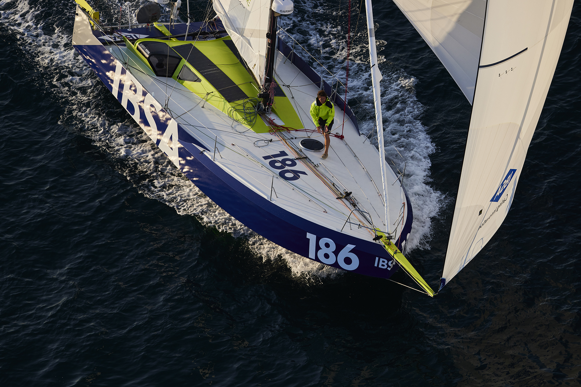 Excès de vitesse, excès d’écarts, excès de manœuvres… la septième journée de course du Défi Atlantique a vu les 12 équipages en lice basculer dans un monde de superlatifs. Plus de vent, plus de mer, plus de manoeuvres, plus de vitesse, moins de repos, moins de sérénité et une compétition toujours aussi exacerbée entre les leaders, Ambrogio Beccaria (Alla Grande Pirelli) et Alberto Bona (IBSA), prompts à s’échanger le trône de leader. Certes, le jeu des empannages et le placement sur l’échiquier incitent à relativiser les écarts, alors que les Class40 de tête multiplient les changements d’amures sous spi dans le fort vent d’Ouest. Mais les vitesses de pointe, 20 noeuds et plus enregistrées à bord des « scows » ces dernières 24 heures amplifient les différences avec les étraves droites, les « pointus » relégués à plus de 160 milles. En bordure Sud d’un front virulent et sur une mer de plus en plus désorganisée par les flux d’Ouest, les nez ronds s’en donnent à coeur joie, se grisant de vitesse sans se départir de l’indispensable dose de lucidité pour déclencher à bon escient les empannages au vent arrière. Les italiens démontrent dans ces nouvelles conditions de vie et de navigation la même maîtrise affichée lors des 7 premiers jours de course, talonnés par un Ian Lipinski (Crédit Mutuel) qui aimerait rappeler à leur bon souvenir son magnifique record des 24 heures réalisé dans des conditions similaires en 2021 (428,21 nm).
