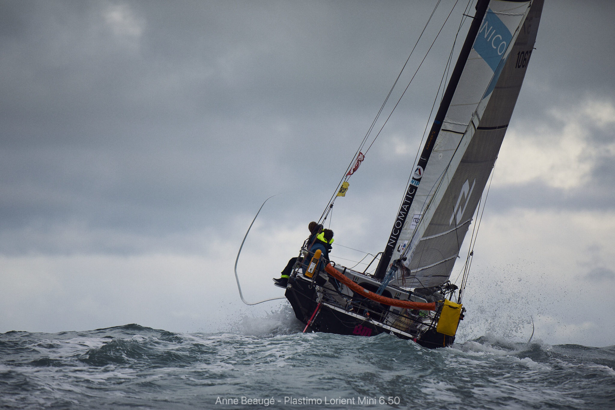 Malgré les différentes avaries rencontrées et les quelques retours au port lors de la première course, l’intégralité de la flotte devrait pouvoir prendre ce deuxième départ. Hormis le Maxi 6.50 n°997 d’Augustin Osmont d’Amilly et de Margot Vennin, fortement endommagé sur la ligne de départ après avoir été victime d’une collision avec le n°1069 de Julien Letissier et Jeanne Courtois – qui ont eux aussi signifié leur abandon -, seuls les valeureux derniers Guillaume Wehrlen et Armelle Nourissat (n°920) se sont retirés de la liste des partants, suite à un talonnage en fin de parcours. Les autres coureurs ayant connu de petites casses ou problèmes de voile ont en effet tous été en mesure de remettre leurs bateaux en état, notamment grâce au soutien du parrain de l’épreuve, Alan Roura, skipper en IMOCA, qui leur a ouvert la porte de son hangar et leur a fourni tous les conseils et le matériel nécessaires à leurs réparations. Un bel exemple de solidarité des gens de mer, si chère à « l’esprit Mini » duquel le Suisse est également issu. Le spectacle s’annonce donc de nouveau grandiose, avec une flotte presque au complet, sous le soleil et dans 10 à 15 noeuds de vent. Les premiers seront attendus sur la ligne d’arrivée dès le début de nuit pour une remise des prix dimanche, à 10h. Le classement final se fera par addition au temps des deux courses.